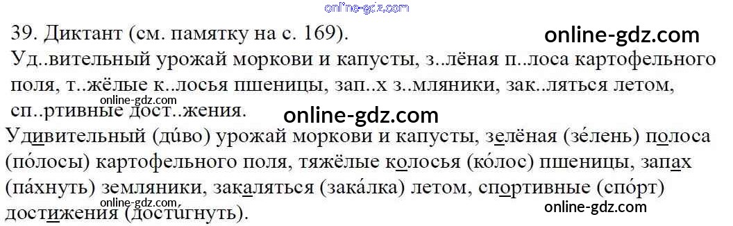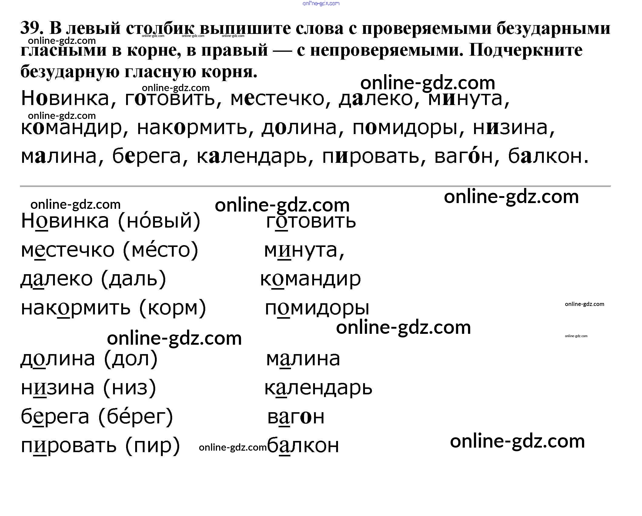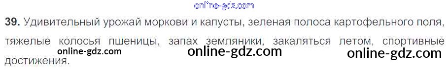 Готовые домашние задания по Русскому языку за 5 класс Учебник Баранов, Ладыженская 2016 - Часть 1. Упражнения 39