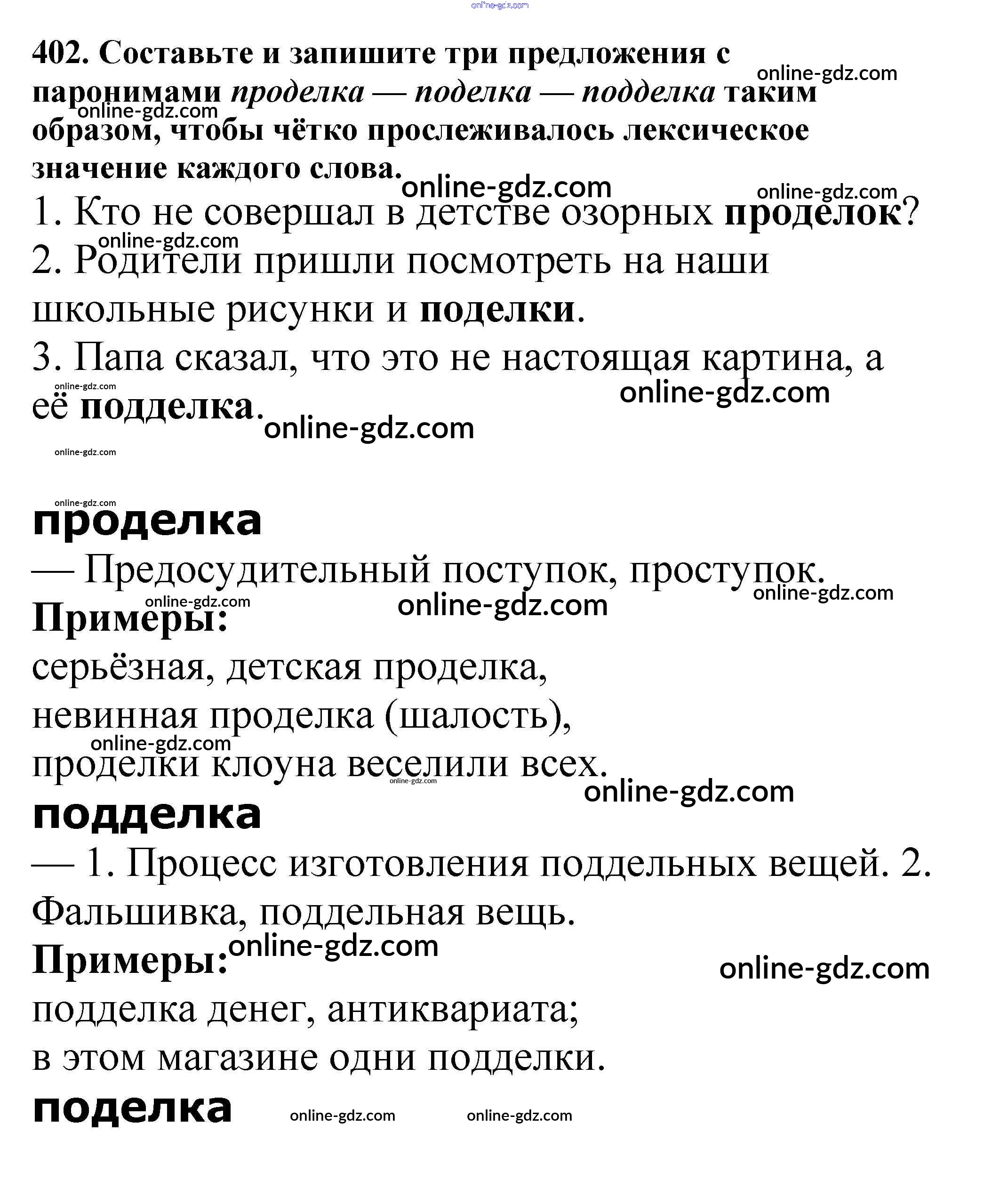 Готовые домашние задания по Русскому языку за 5 класс Учебник Баранов, Ладыженская 2016 - Часть 1. Упражнения 402