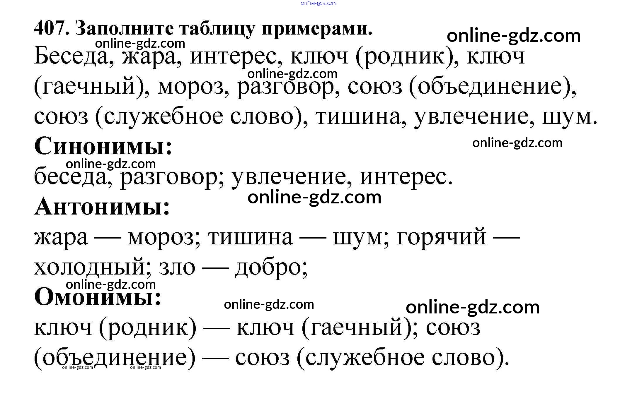 Готовые домашние задания по Русскому языку за 5 класс Учебник Баранов, Ладыженская 2016 - Часть 1. Упражнения 407