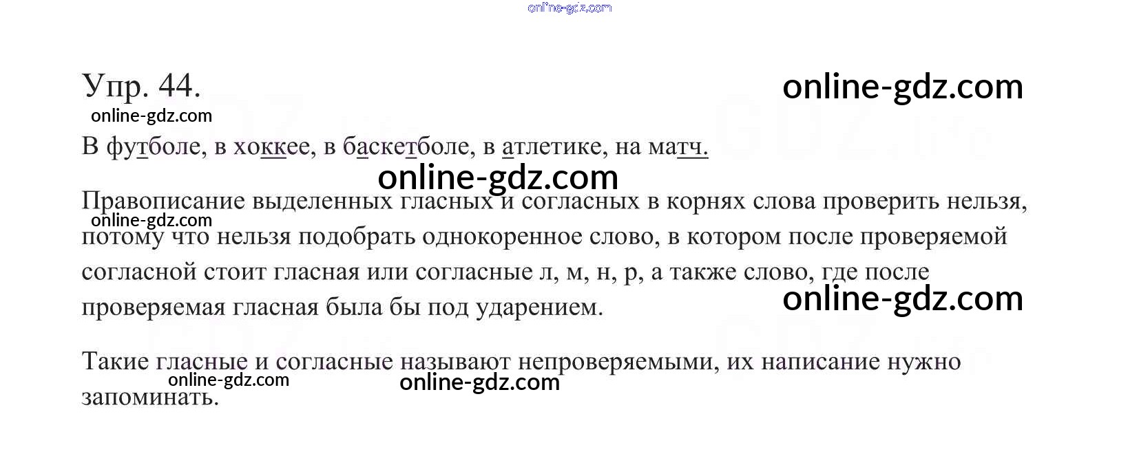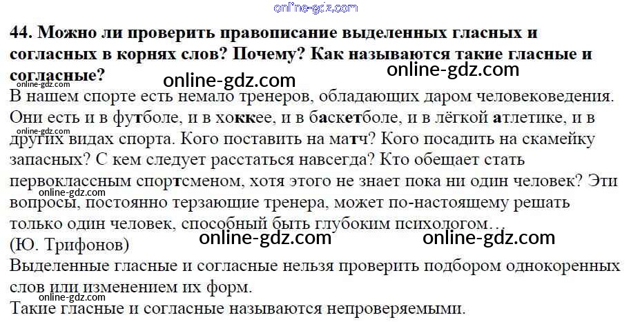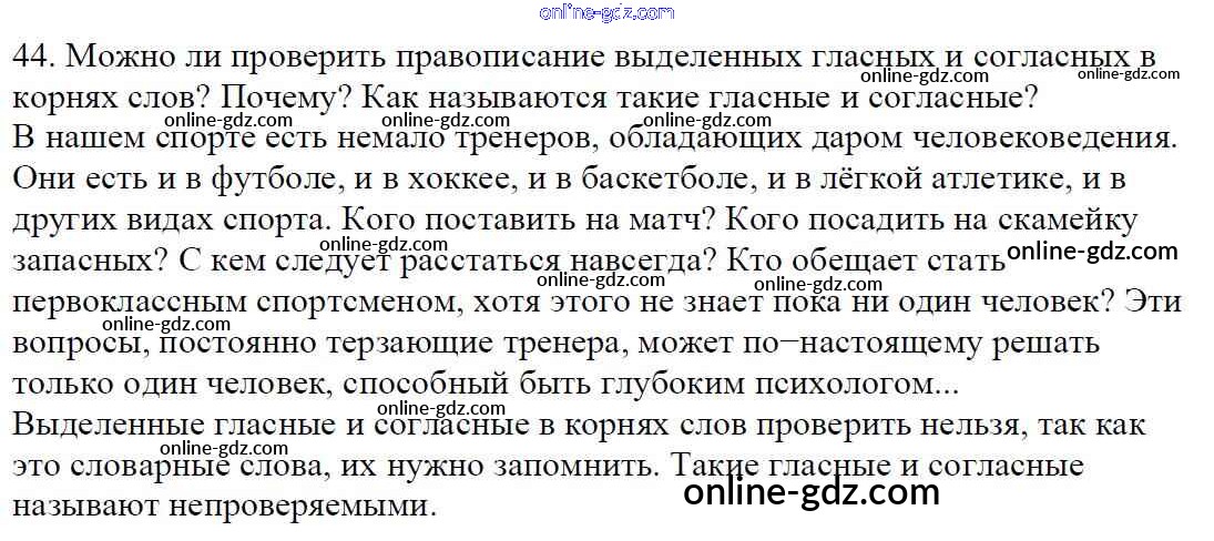 Готовые домашние задания по Русскому языку за 5 класс Учебник Баранов, Ладыженская 2016 - Часть 1. Упражнения 44