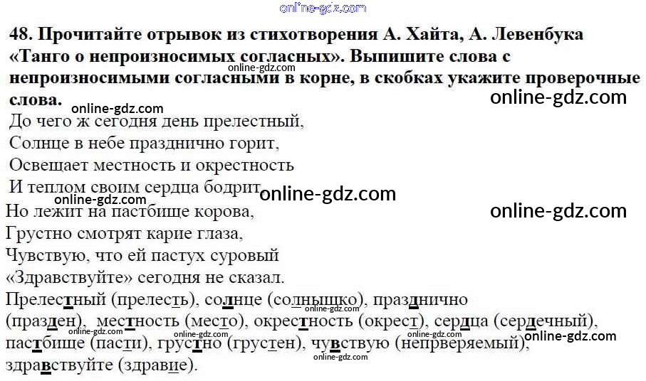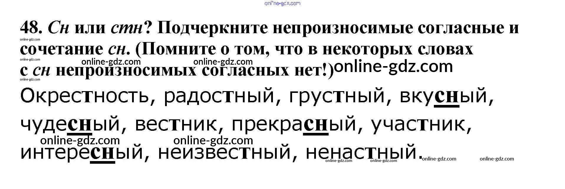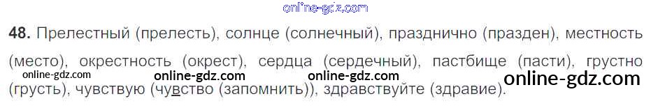 Готовые домашние задания по Русскому языку за 5 класс Учебник Баранов, Ладыженская 2016 - Часть 1. Упражнения 48