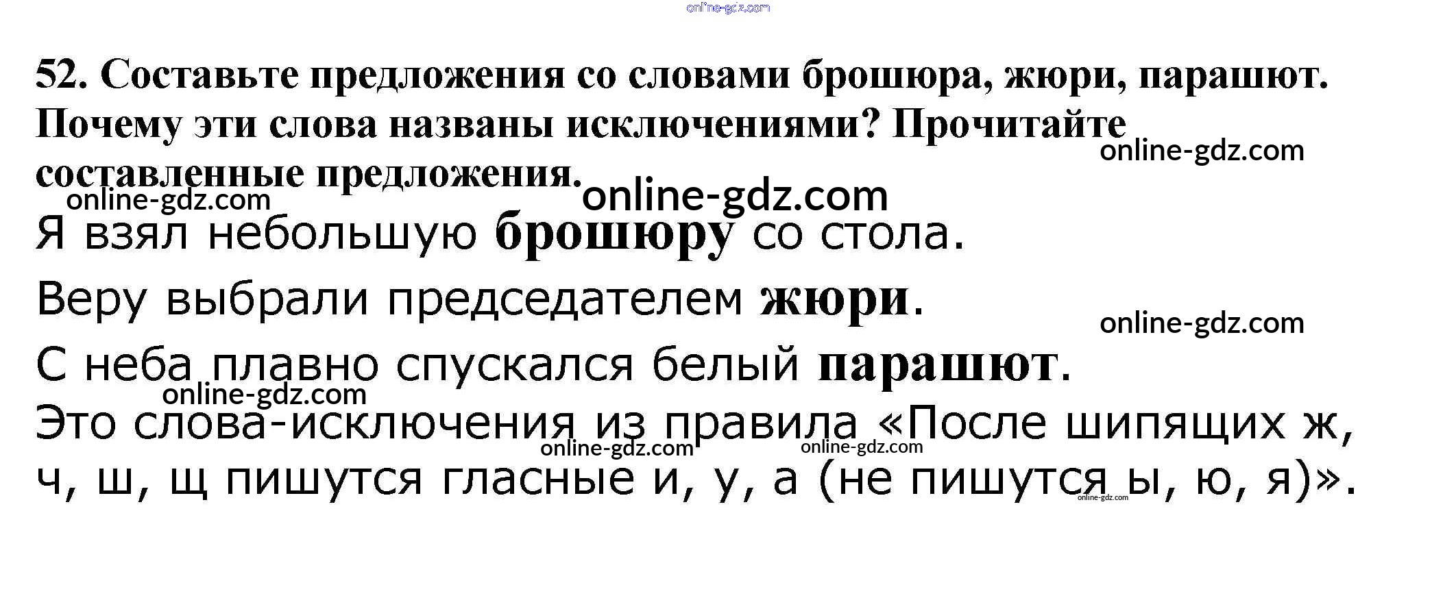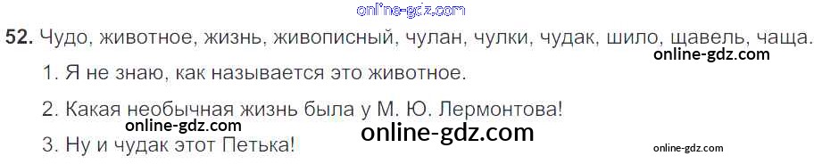 Готовые домашние задания по Русскому языку за 5 класс Учебник Баранов, Ладыженская 2016 - Часть 1. Упражнения 52