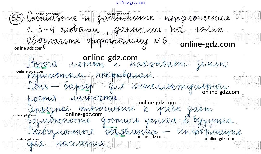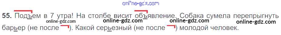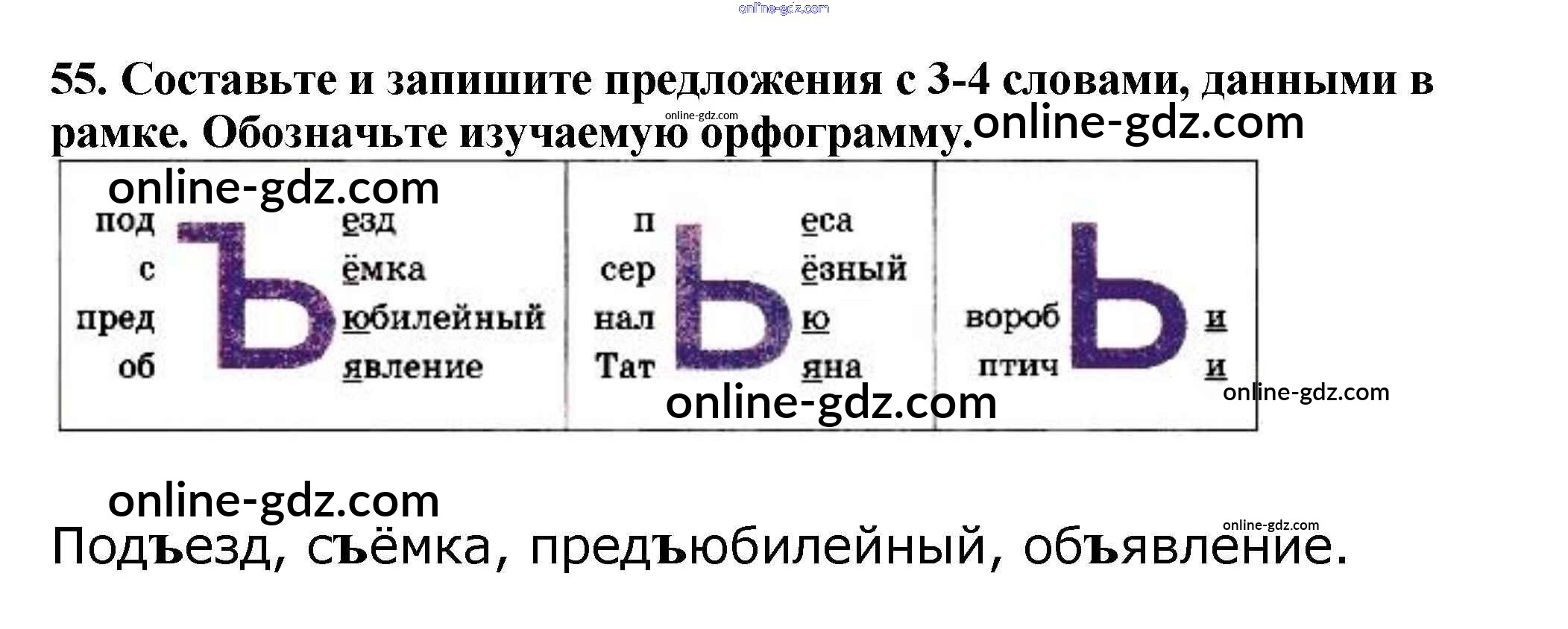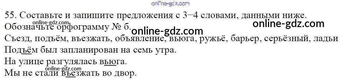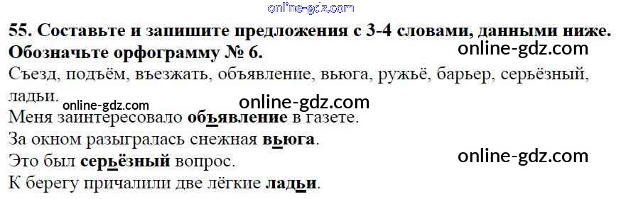 Готовые домашние задания по Русскому языку за 5 класс Учебник Баранов, Ладыженская 2016 - Часть 1. Упражнения 55