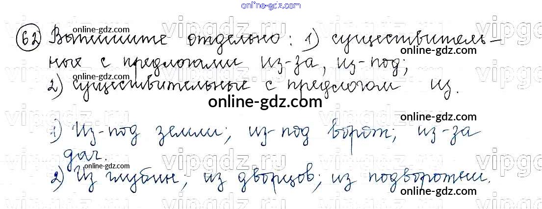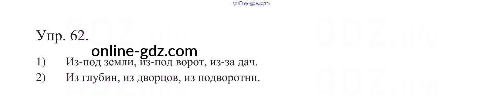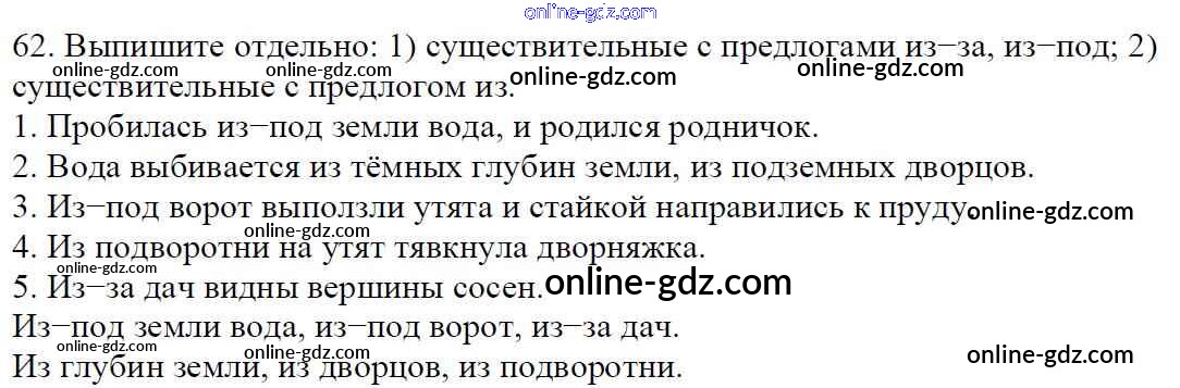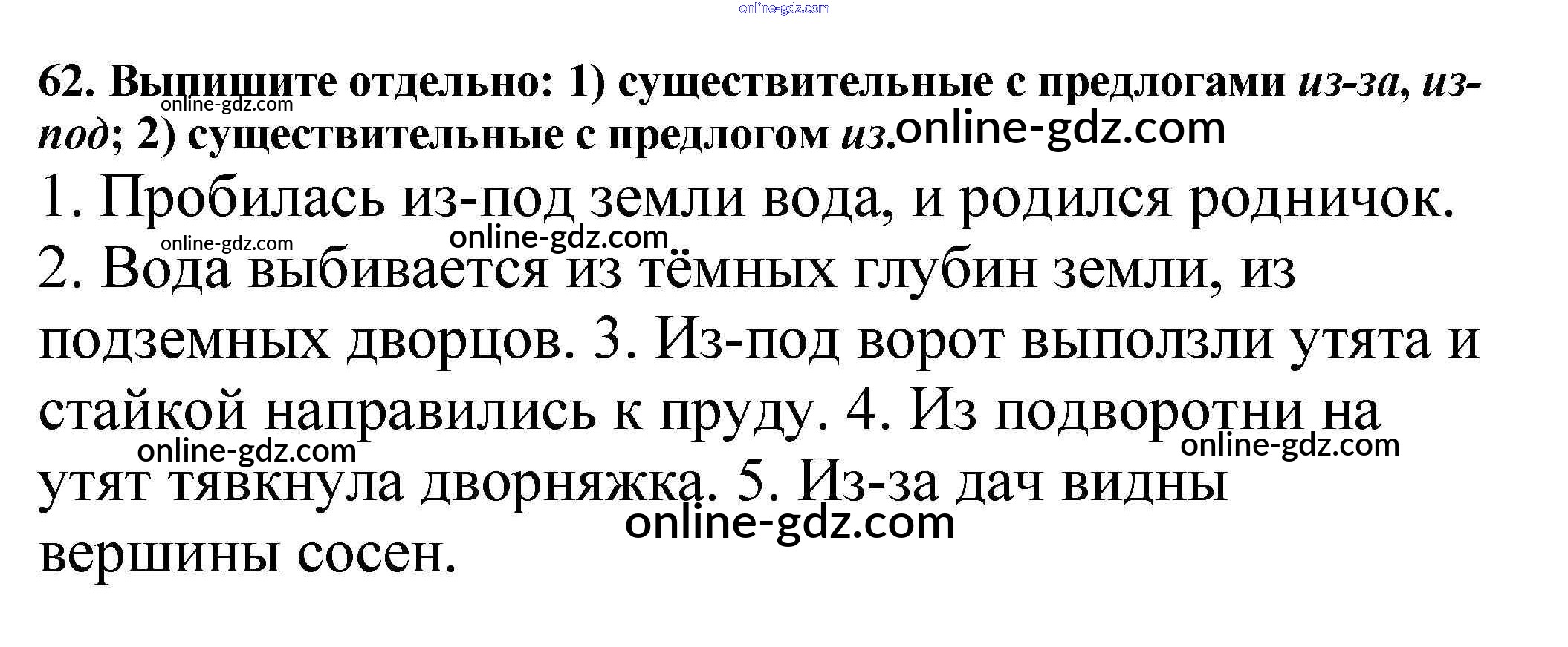 Готовые домашние задания по Русскому языку за 5 класс Учебник Баранов, Ладыженская 2016 - Часть 1. Упражнения 62