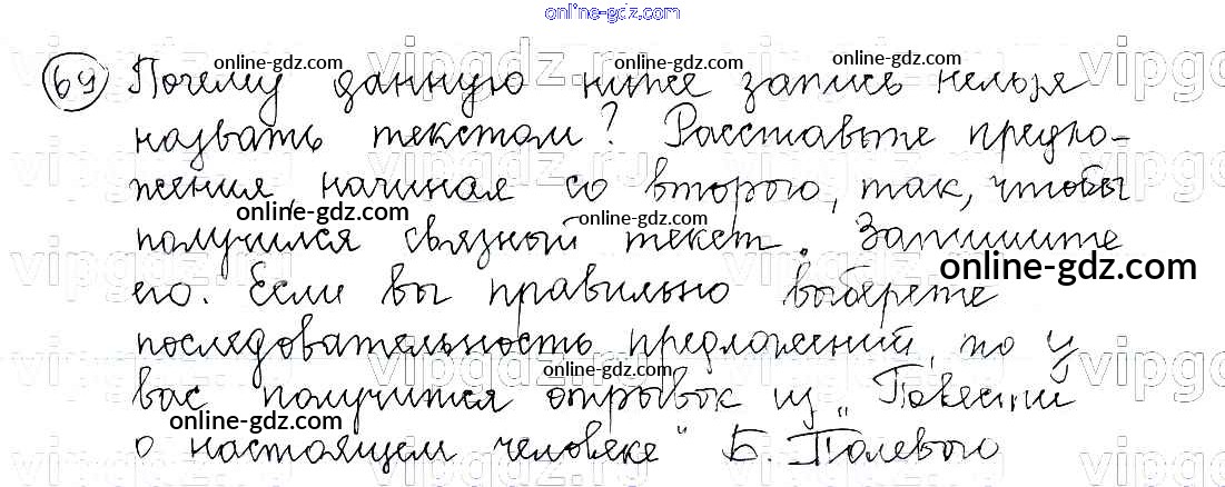 Готовые домашние задания по Русскому языку за 5 класс Учебник Баранов, Ладыженская 2016 - Часть 1. Упражнения 69