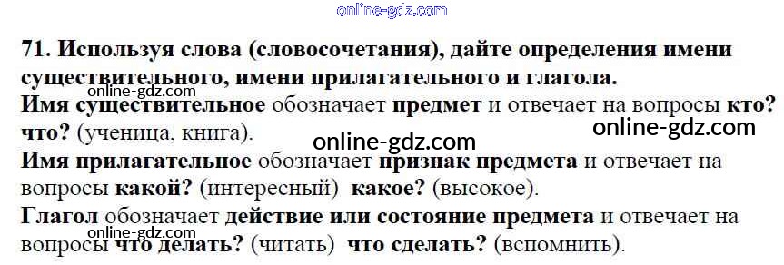 Готовые домашние задания по Русскому языку за 5 класс Учебник Баранов, Ладыженская 2016 - Часть 1. Упражнения 71