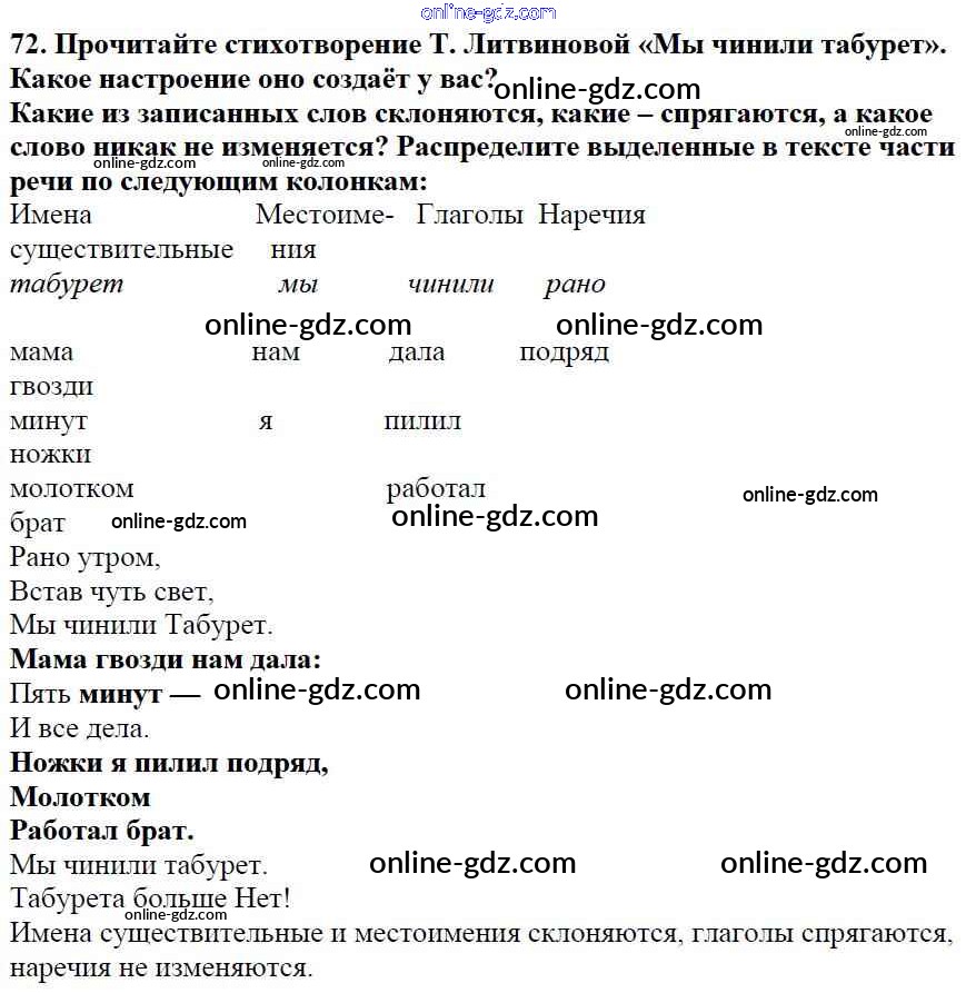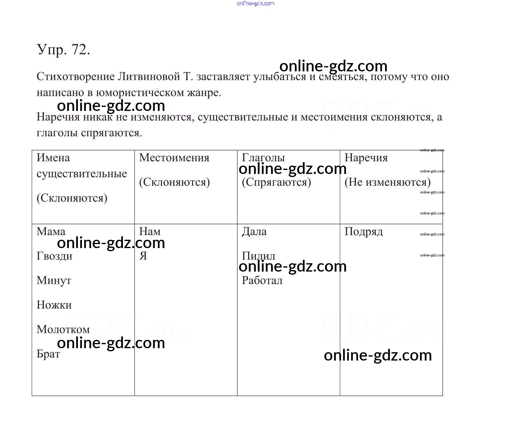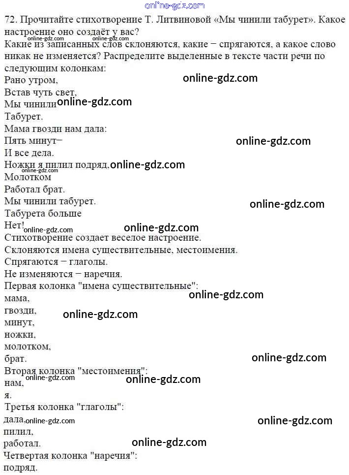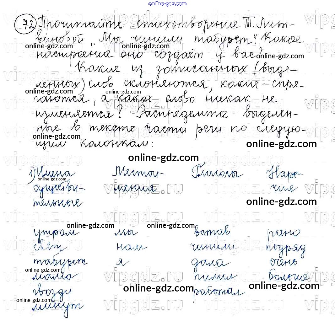 Готовые домашние задания по Русскому языку за 5 класс Учебник Баранов, Ладыженская 2016 - Часть 1. Упражнения 72