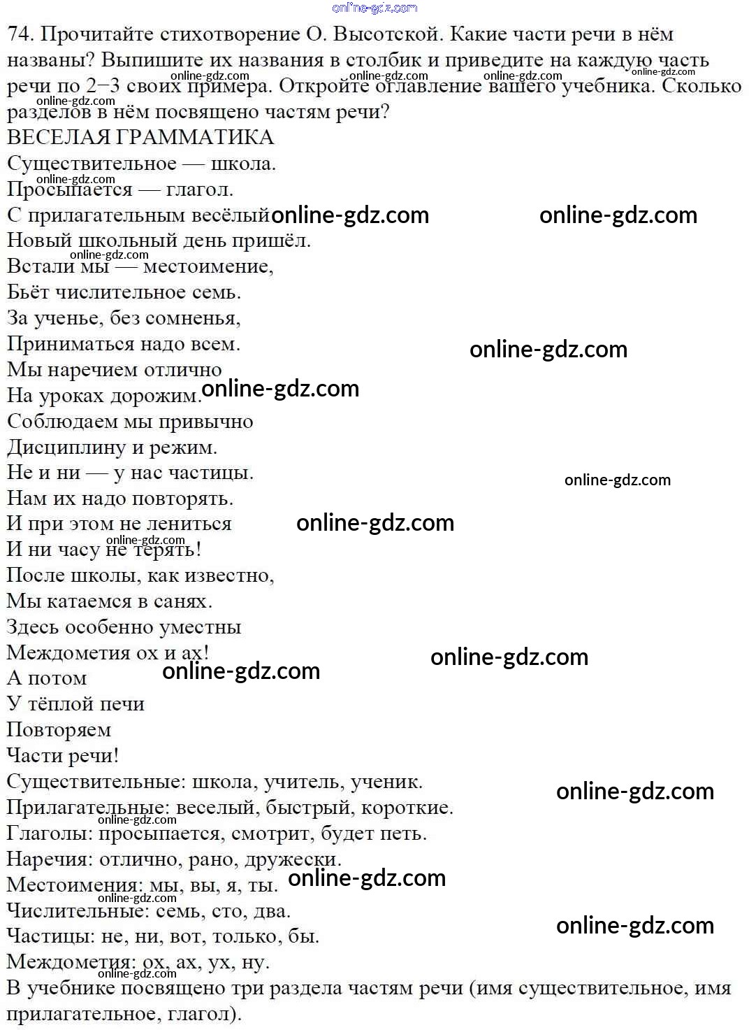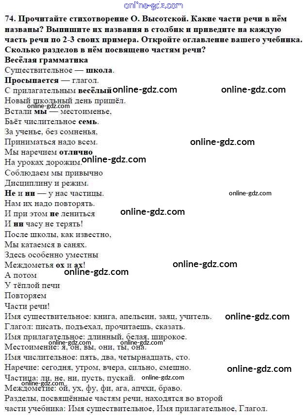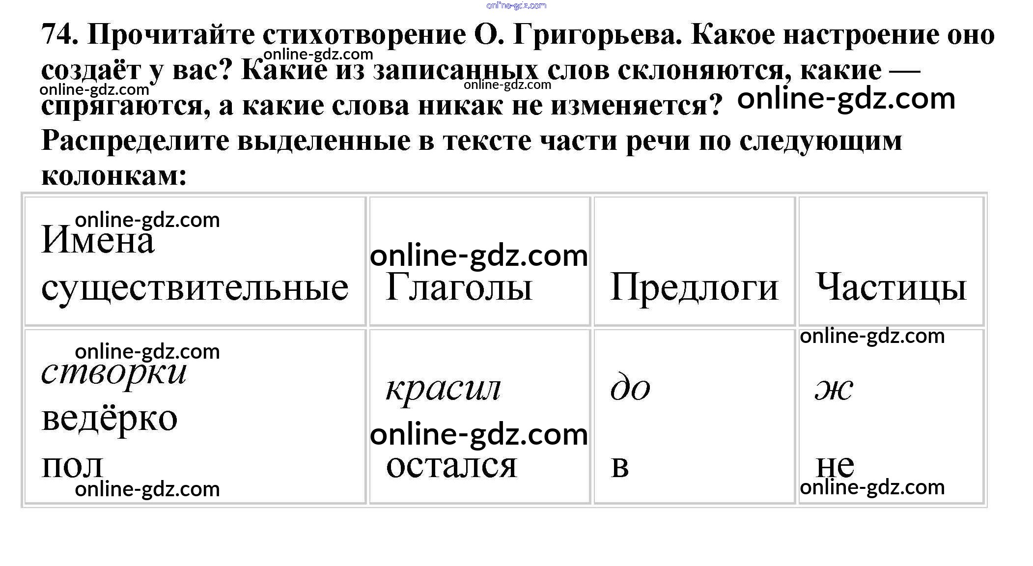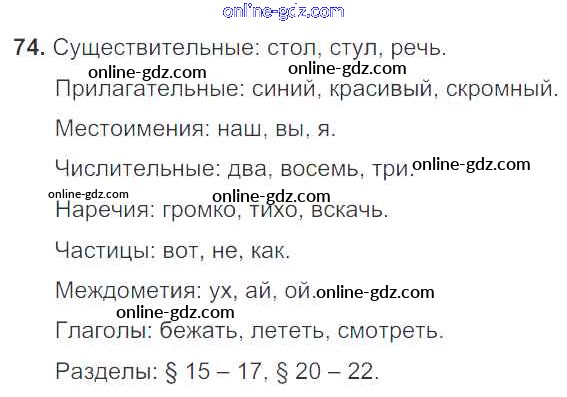 Готовые домашние задания по Русскому языку за 5 класс Учебник Баранов, Ладыженская 2016 - Часть 1. Упражнения 74