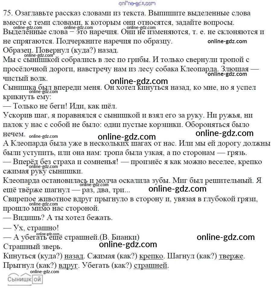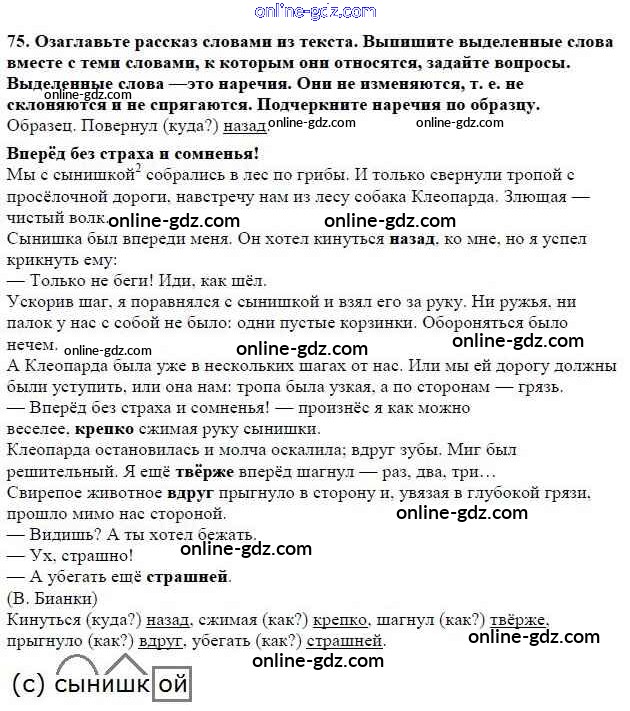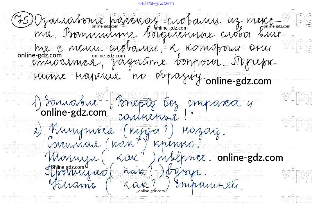 Готовые домашние задания по Русскому языку за 5 класс Учебник Баранов, Ладыженская 2016 - Часть 1. Упражнения 75