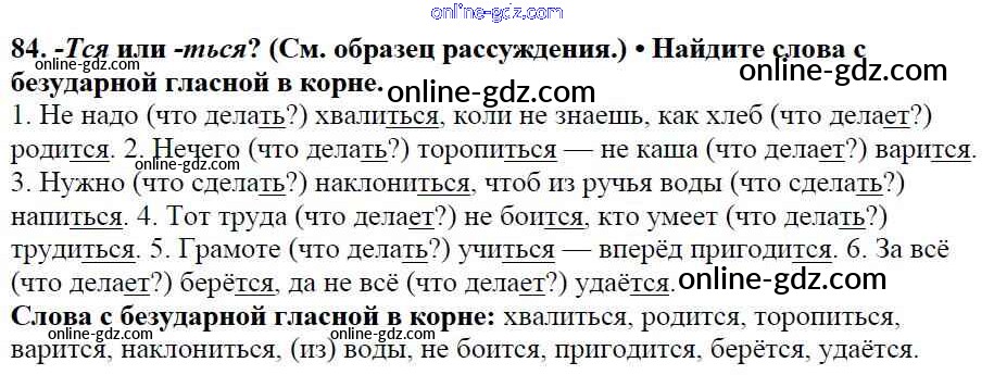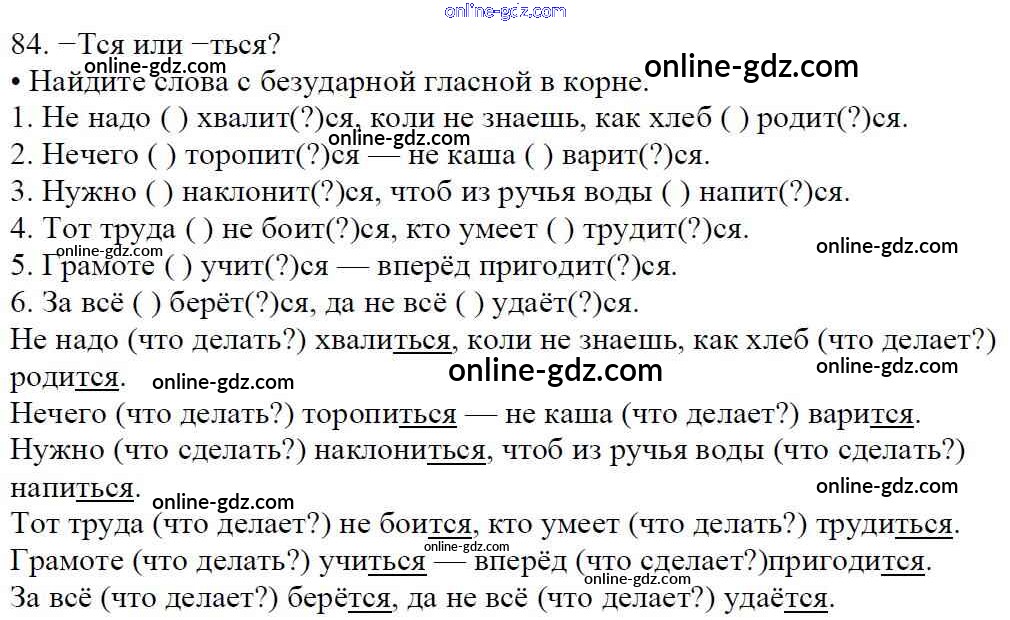 Готовые домашние задания по Русскому языку за 5 класс Учебник Баранов, Ладыженская 2016 - Часть 1. Упражнения 84