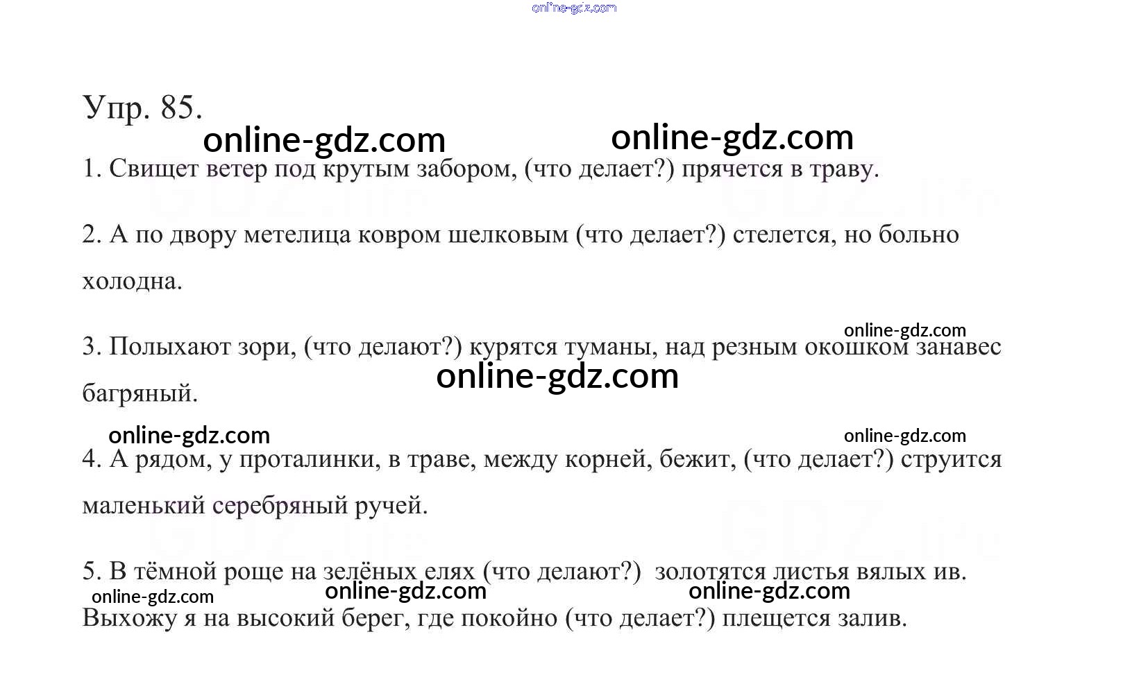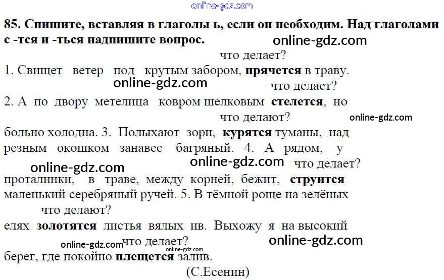 Готовые домашние задания по Русскому языку за 5 класс Учебник Баранов, Ладыженская 2016 - Часть 1. Упражнения 85