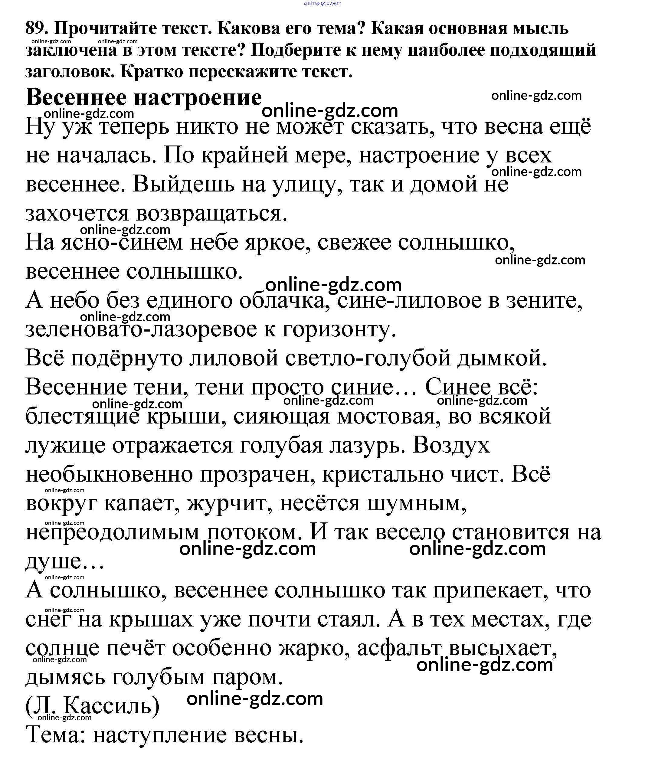 Готовые домашние задания по Русскому языку за 5 класс Учебник Баранов, Ладыженская 2016 - Часть 1. Упражнения 89