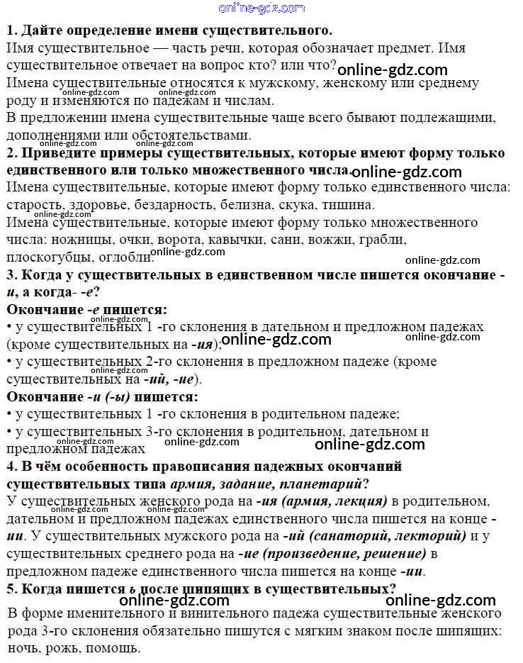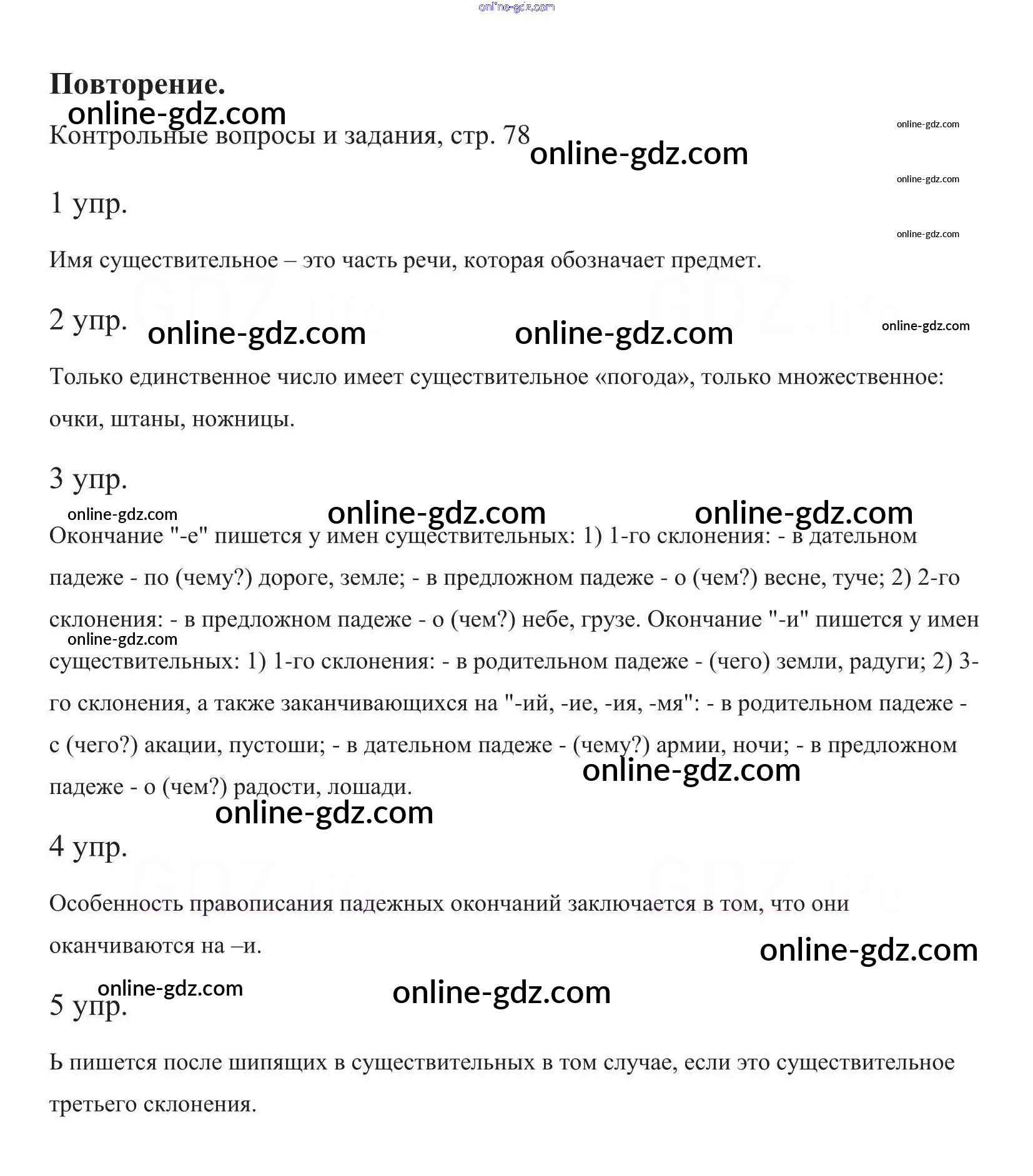 Готовые домашние задания по Русскому языку за 5 класс Учебник Баранов, Ладыженская 2016 - Повторение. Контрольные вопросы и задания Часть 2. Упражнения стр.78 (89)