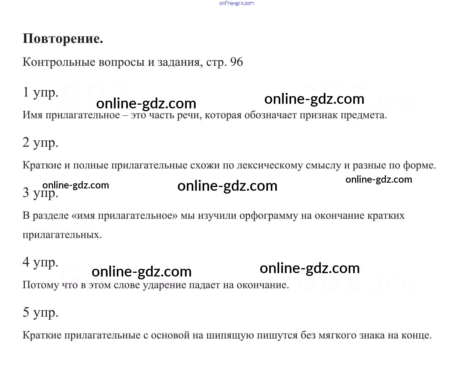 Готовые домашние задания по Русскому языку за 5 класс Учебник Баранов, Ладыженская 2016 - Повторение. Контрольные вопросы и задания Часть 2. Упражнения стр.96 (111-112)