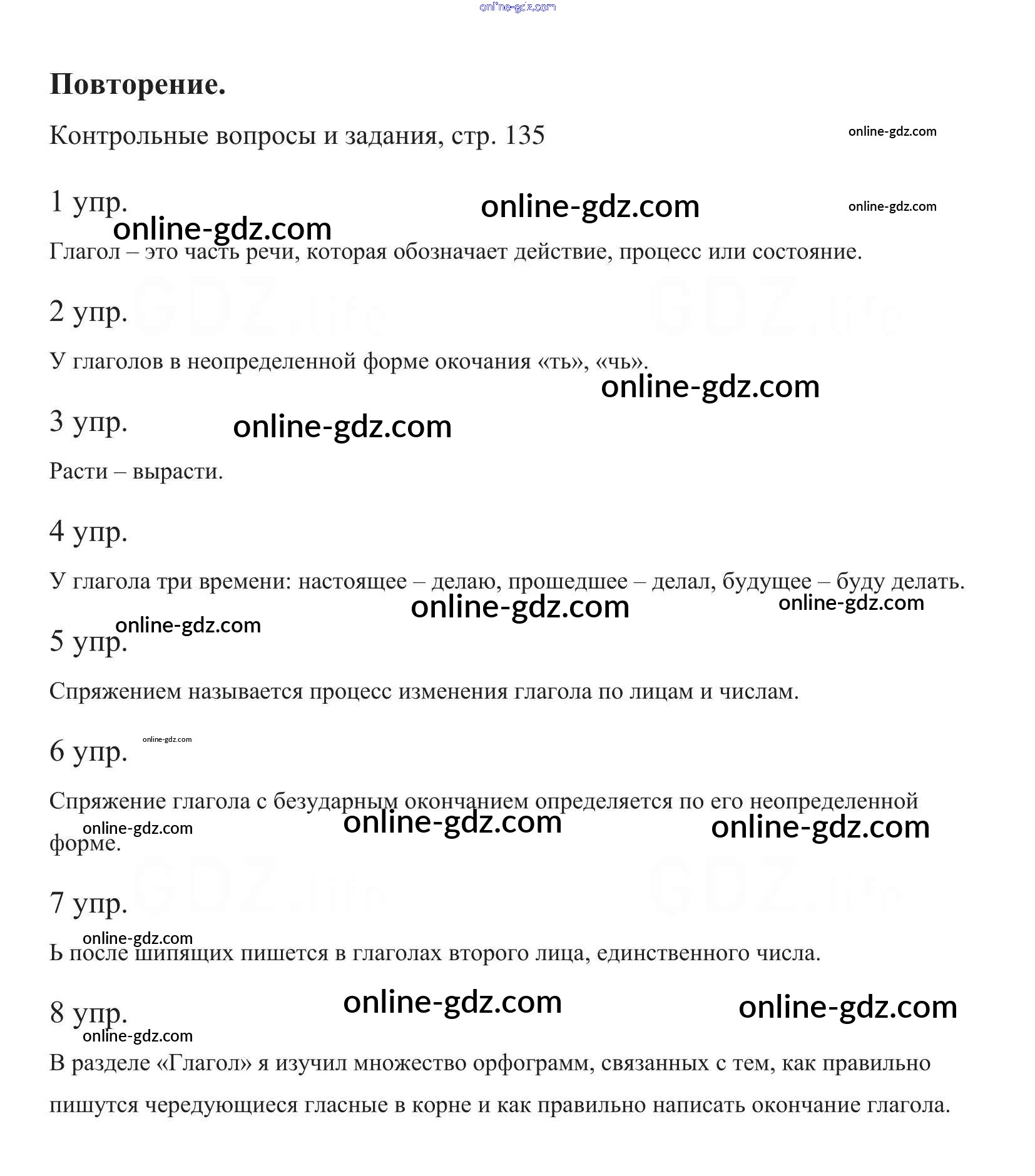 часть 2. упражнение / повторение. контрольный вопрос и задание / стр.135 (154)