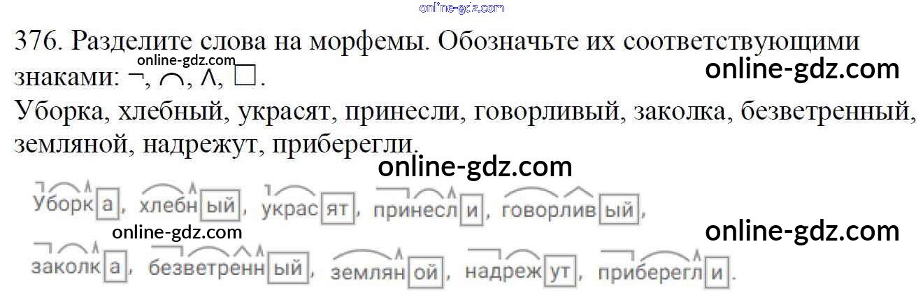 Готовые домашние задания по Русскому языку за 5 класс Учебник Баранов, Ладыженская 2016 - Часть 2. Упражнения 376