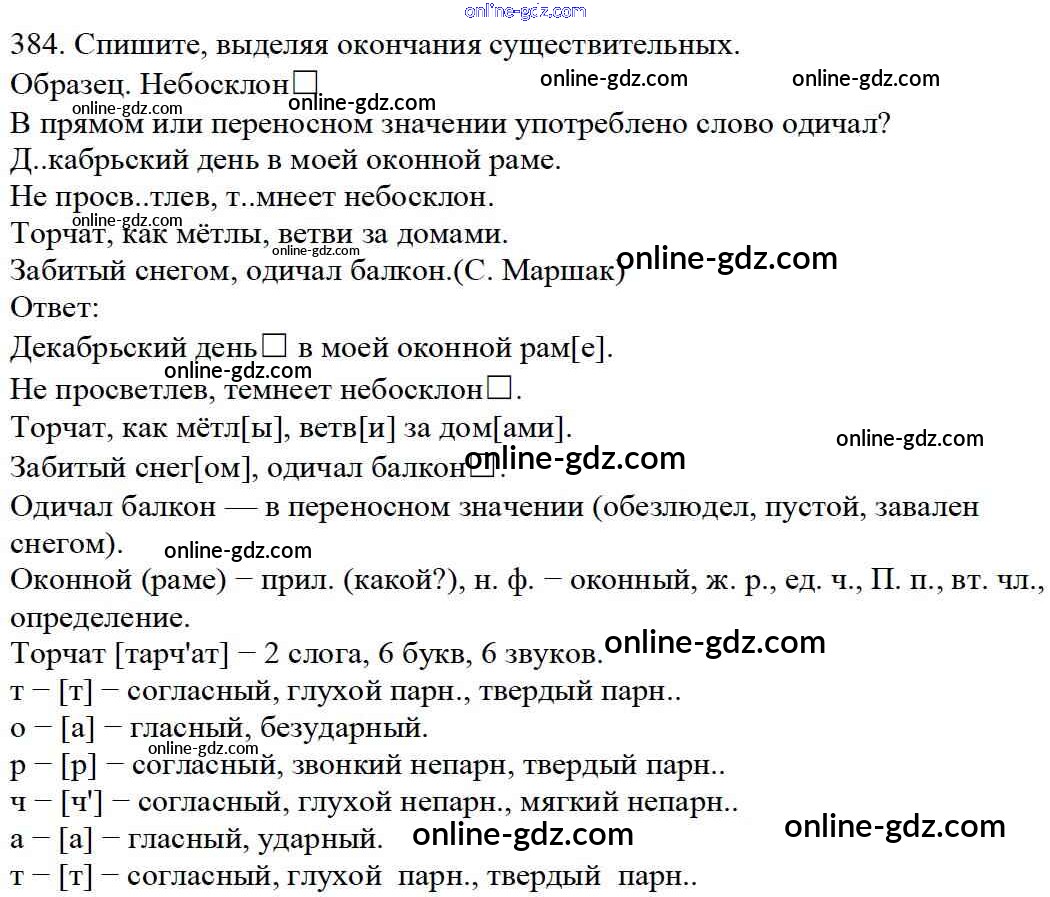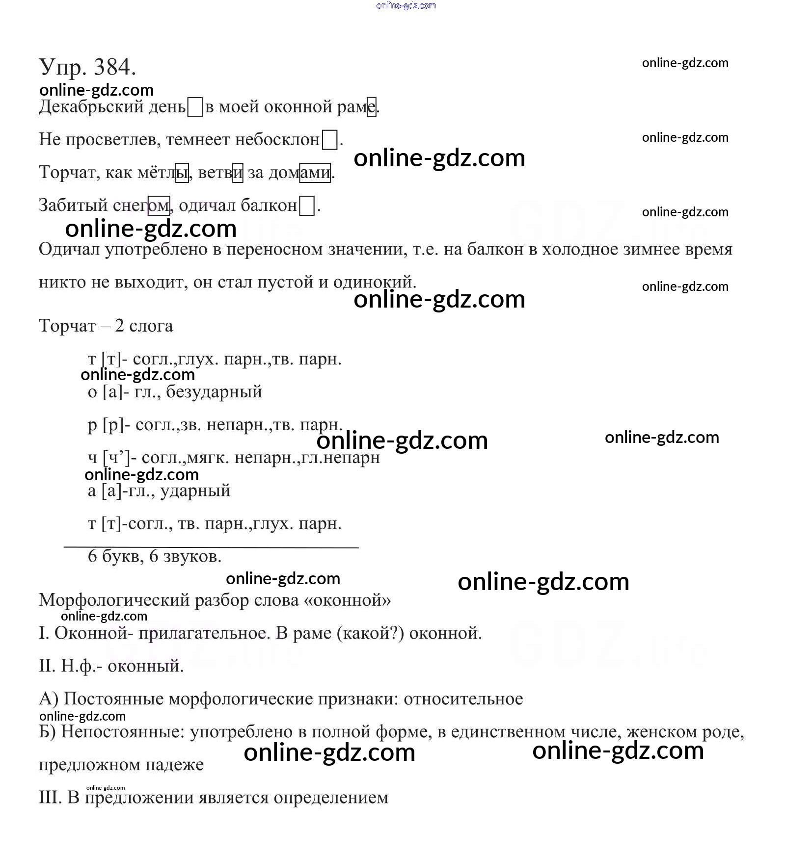 Готовые домашние задания по Русскому языку за 5 класс Учебник Баранов, Ладыженская 2016 - Часть 2. Упражнения 384