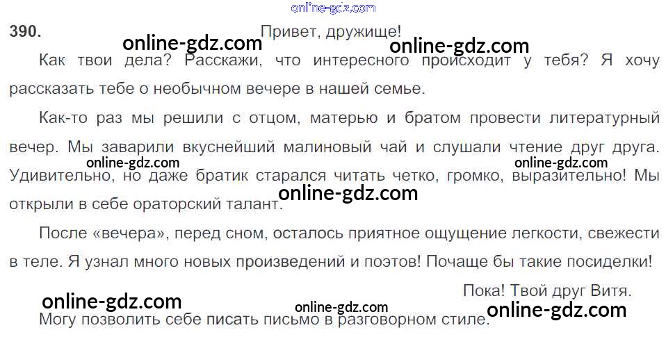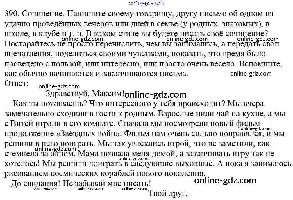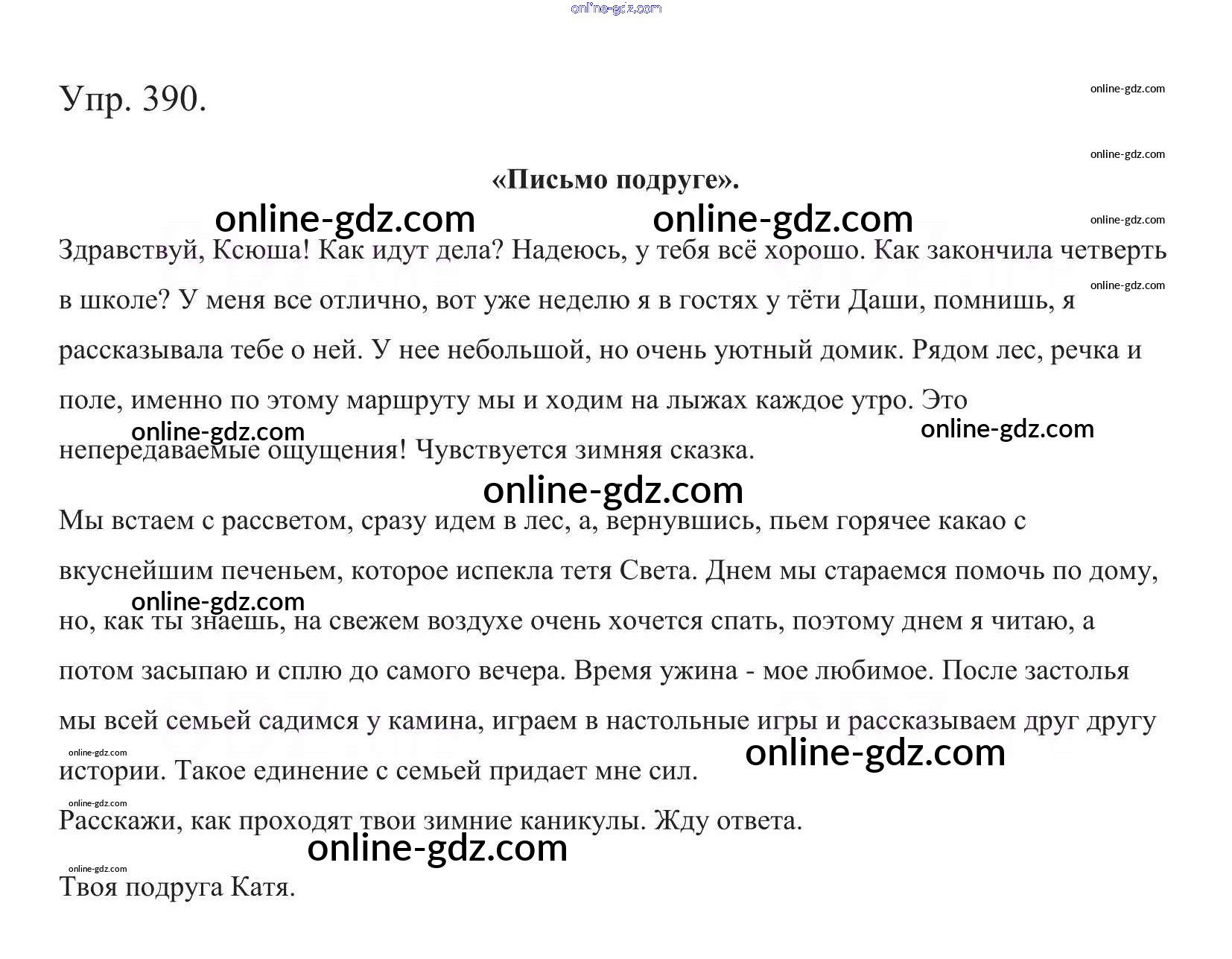 Готовые домашние задания по Русскому языку за 5 класс Учебник Баранов, Ладыженская 2016 - Часть 2. Упражнения 390
