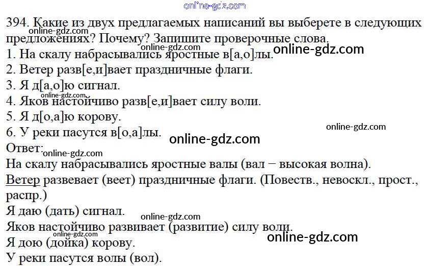 Готовые домашние задания по Русскому языку за 5 класс Учебник Баранов, Ладыженская 2016 - Часть 2. Упражнения 394