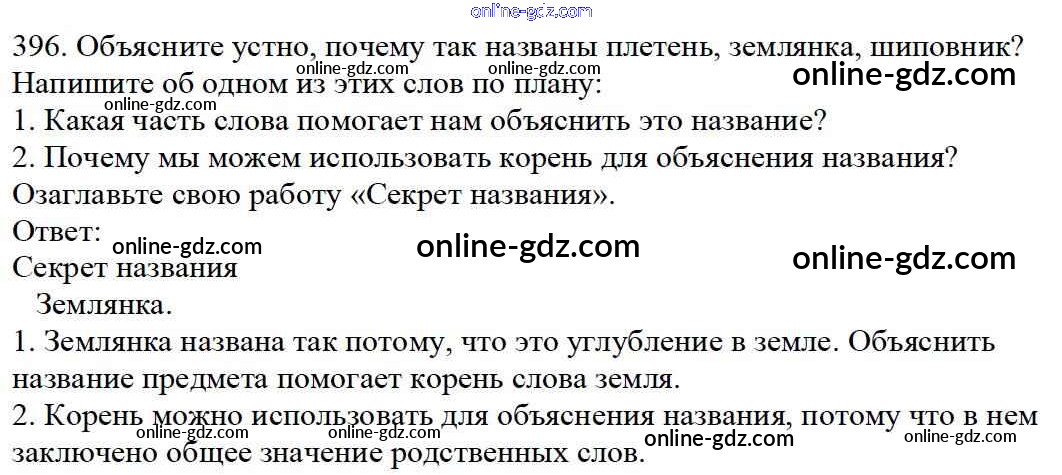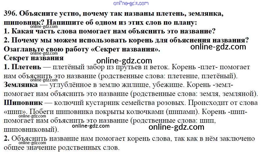 Готовые домашние задания по Русскому языку за 5 класс Учебник Баранов, Ладыженская 2016 - Часть 2. Упражнения 396