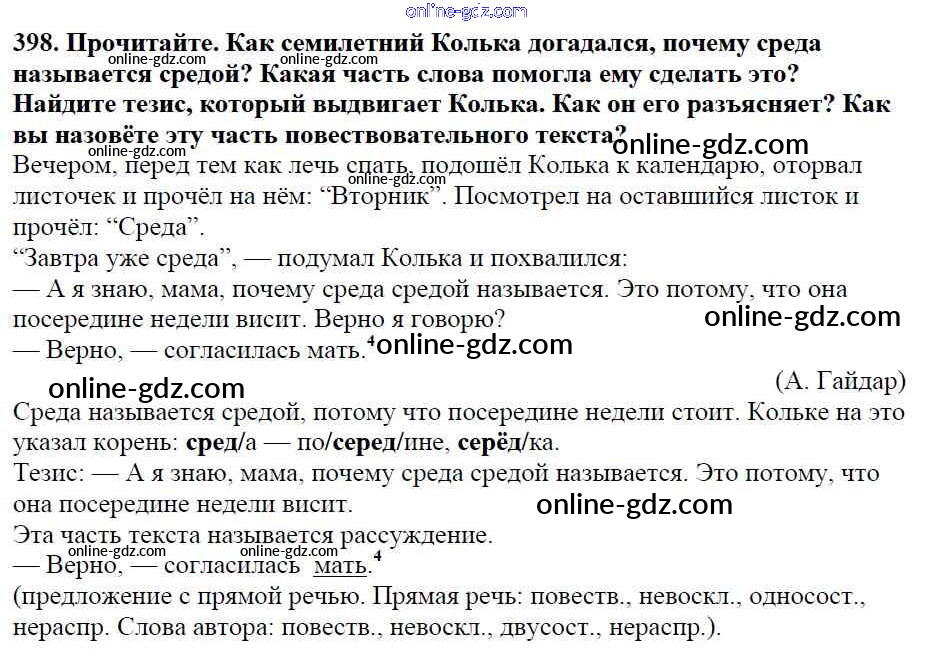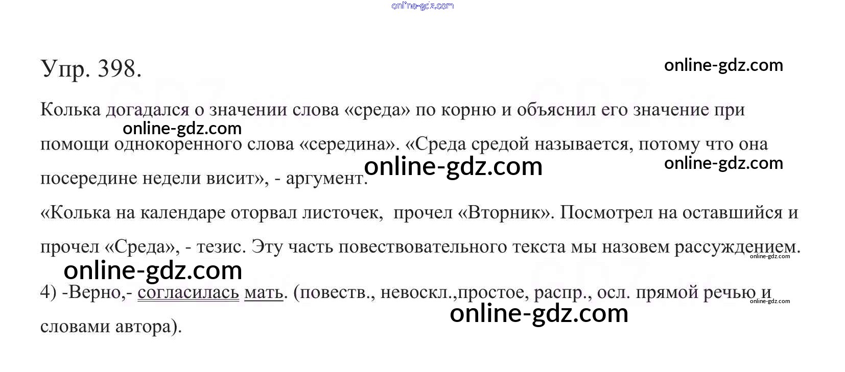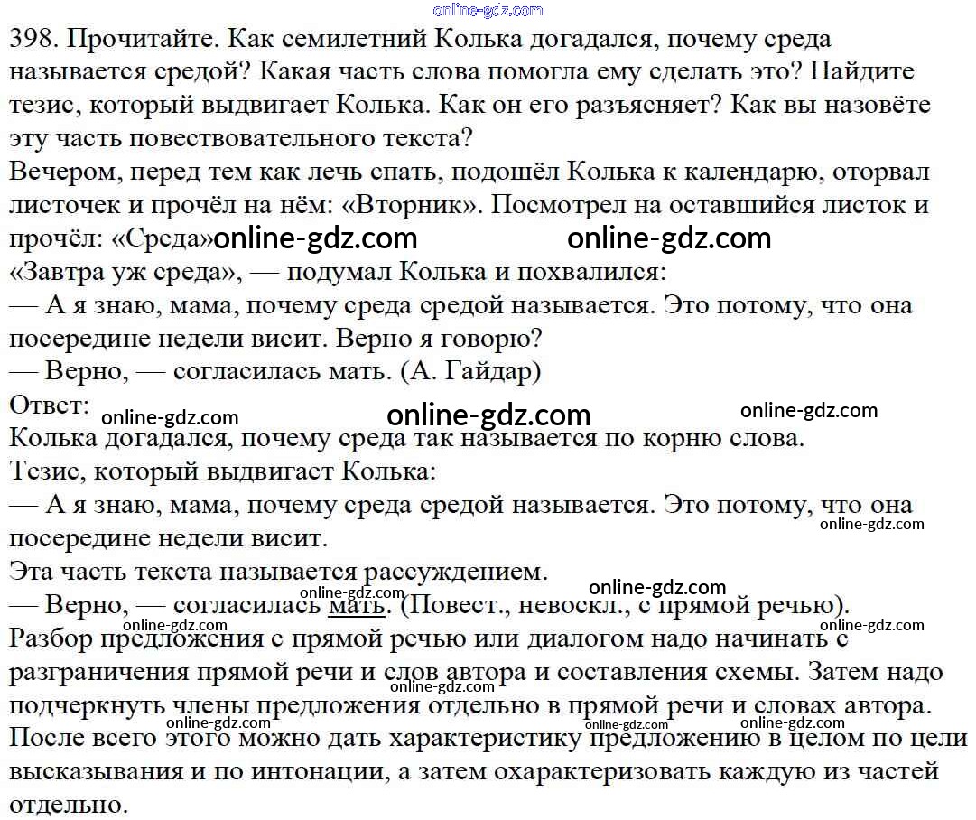 Готовые домашние задания по Русскому языку за 5 класс Учебник Баранов, Ладыженская 2016 - Часть 2. Упражнения 398