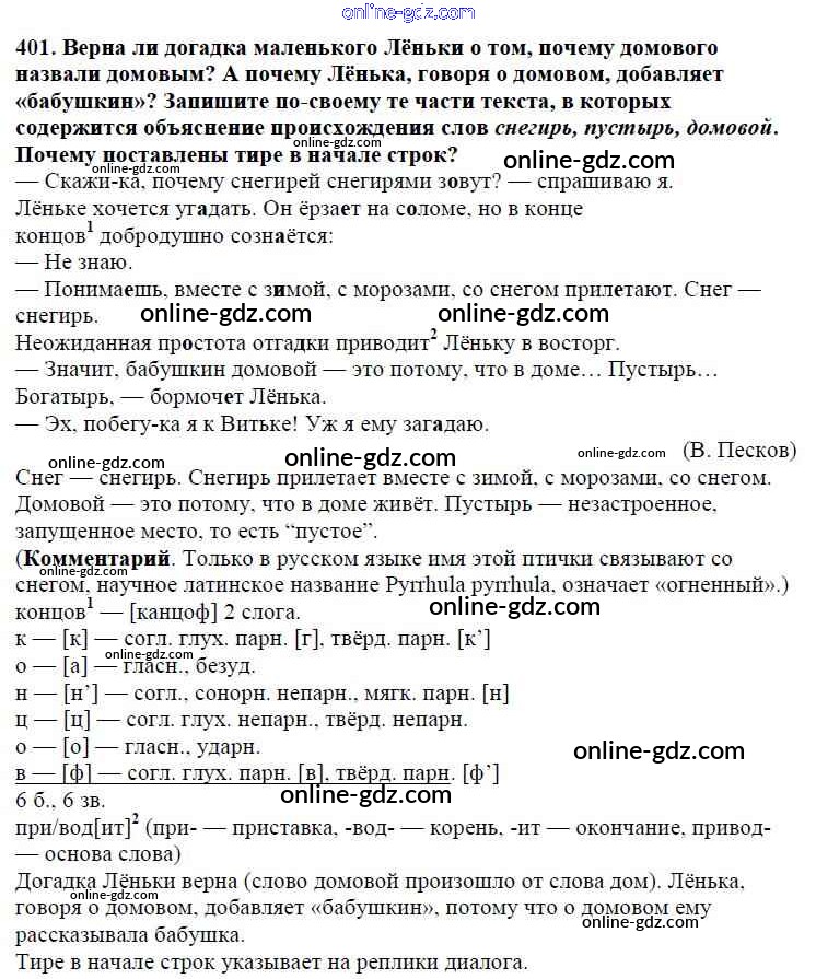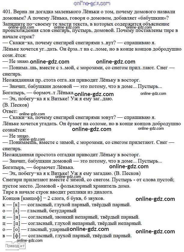 Готовые домашние задания по Русскому языку за 5 класс Учебник Баранов, Ладыженская 2016 - Часть 2. Упражнения 401