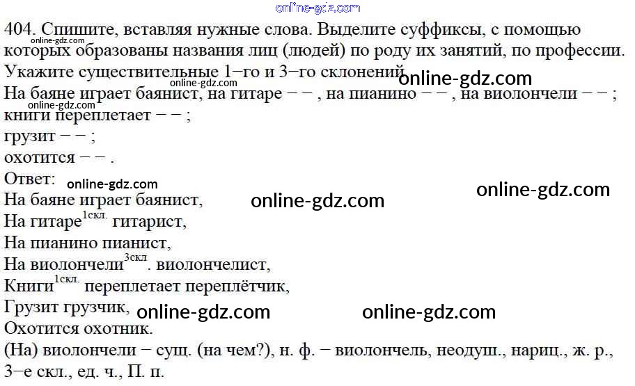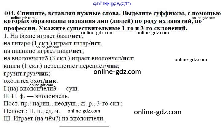 Готовые домашние задания по Русскому языку за 5 класс Учебник Баранов, Ладыженская 2016 - Часть 2. Упражнения 404