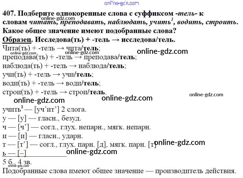 Готовые домашние задания по Русскому языку за 5 класс Учебник Баранов, Ладыженская 2016 - Часть 2. Упражнения 407