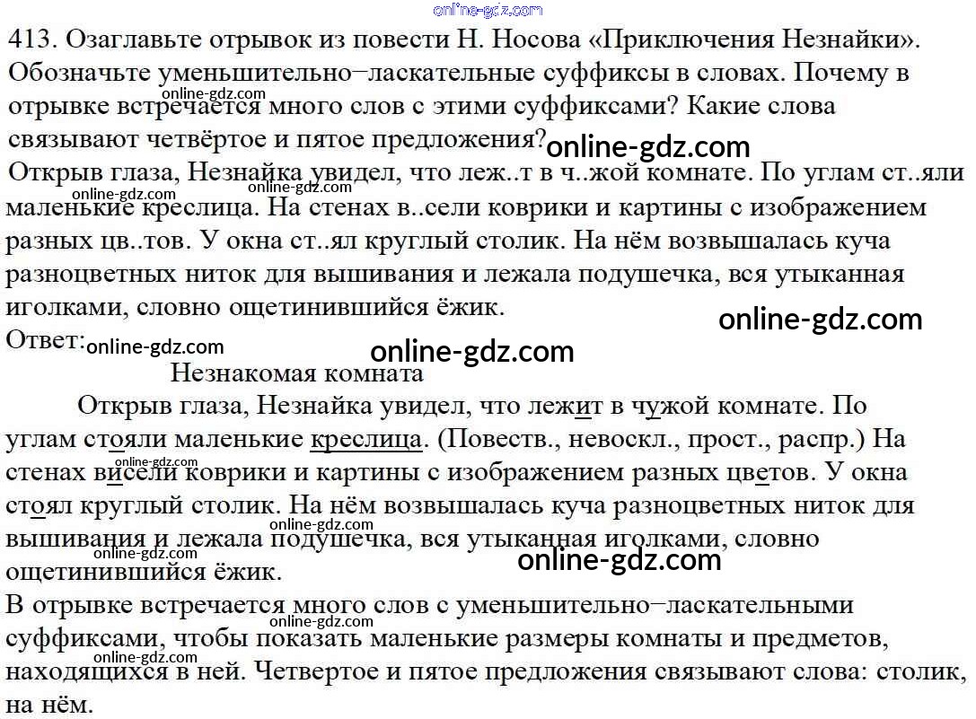 Готовые домашние задания по Русскому языку за 5 класс Учебник Баранов, Ладыженская 2016 - Часть 2. Упражнения 413