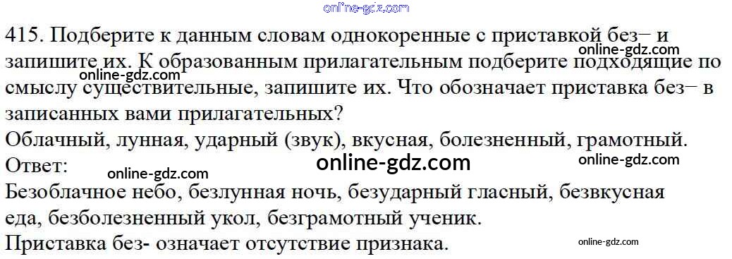 Готовые домашние задания по Русскому языку за 5 класс Учебник Баранов, Ладыженская 2016 - Часть 2. Упражнения 415