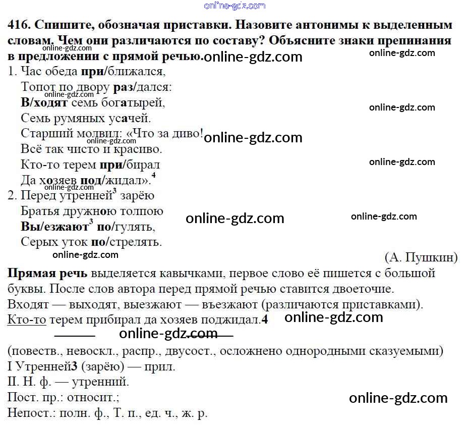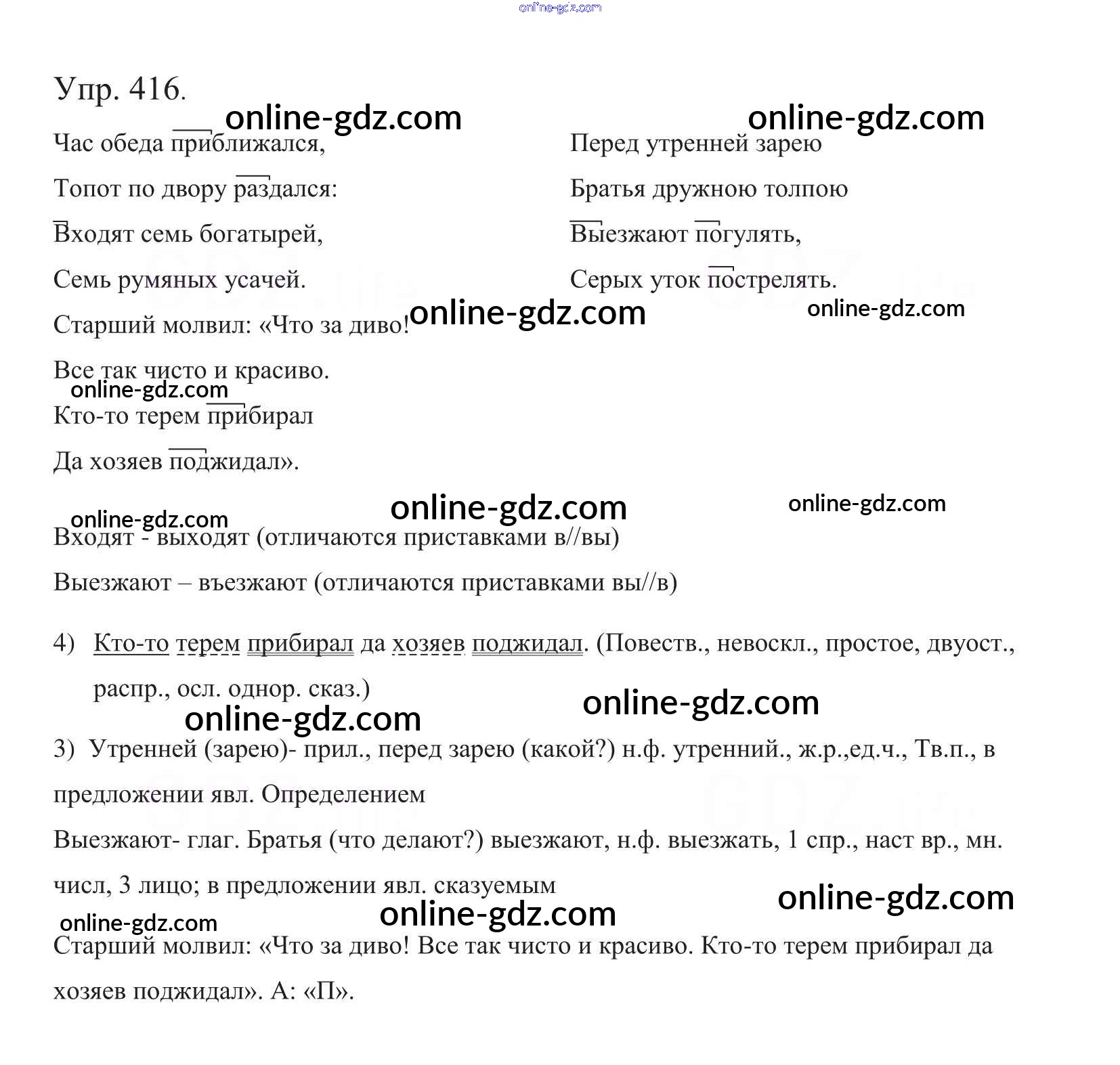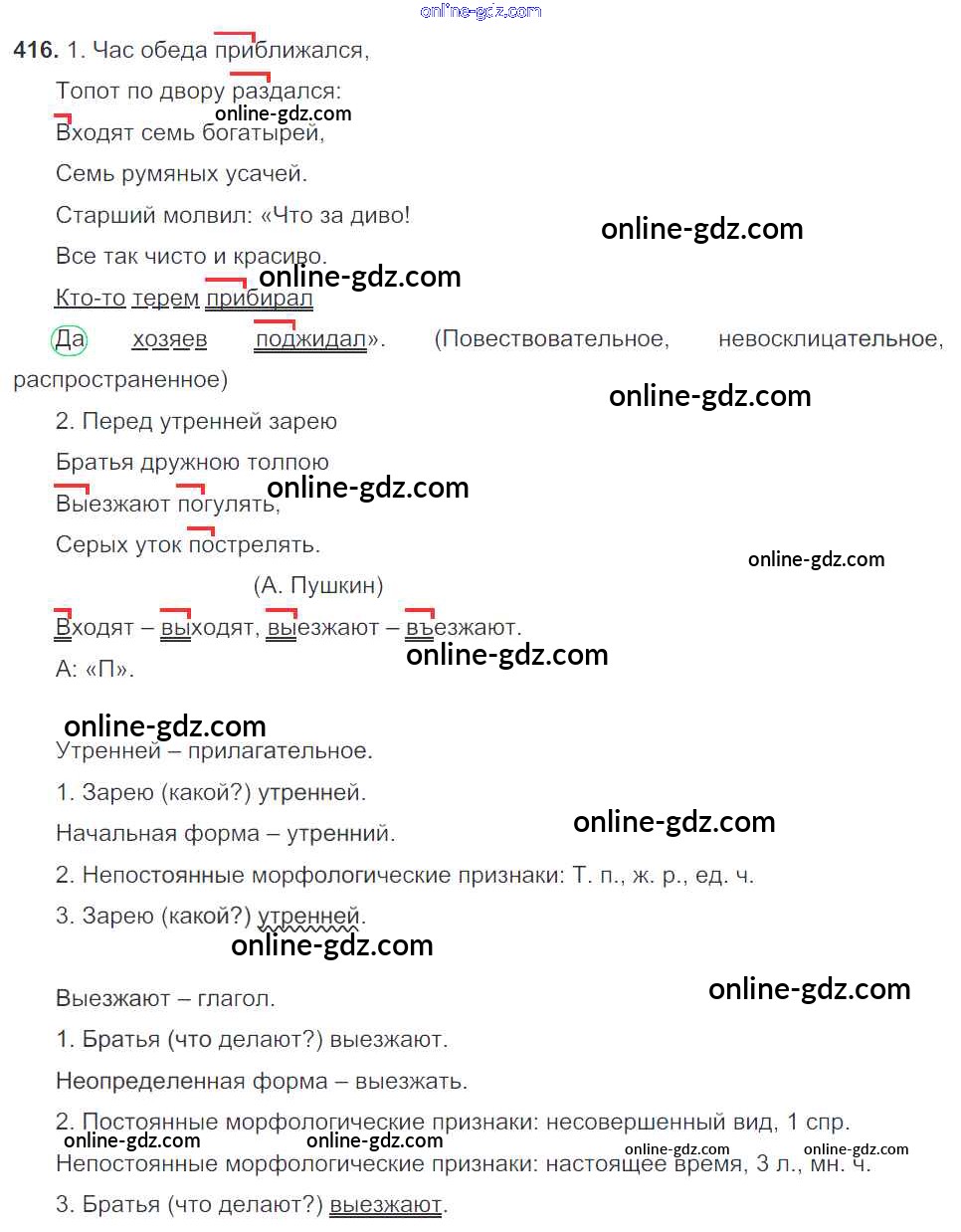 Готовые домашние задания по Русскому языку за 5 класс Учебник Баранов, Ладыженская 2016 - Часть 2. Упражнения 416