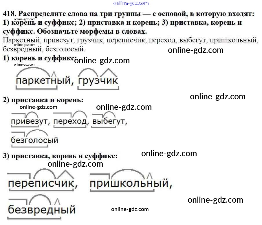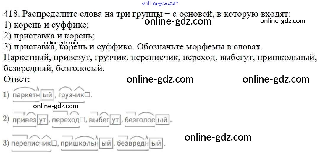 Готовые домашние задания по Русскому языку за 5 класс Учебник Баранов, Ладыженская 2016 - Часть 2. Упражнения 418