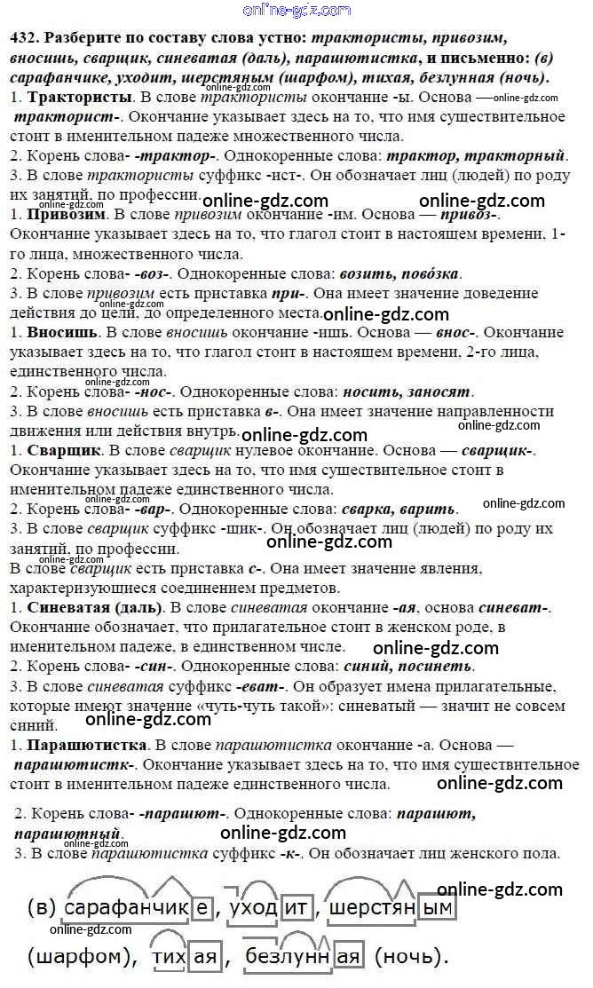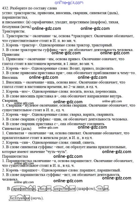 Готовые домашние задания по Русскому языку за 5 класс Учебник Баранов, Ладыженская 2016 - Часть 2. Упражнения 432