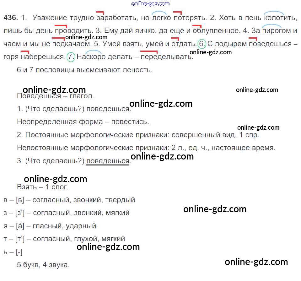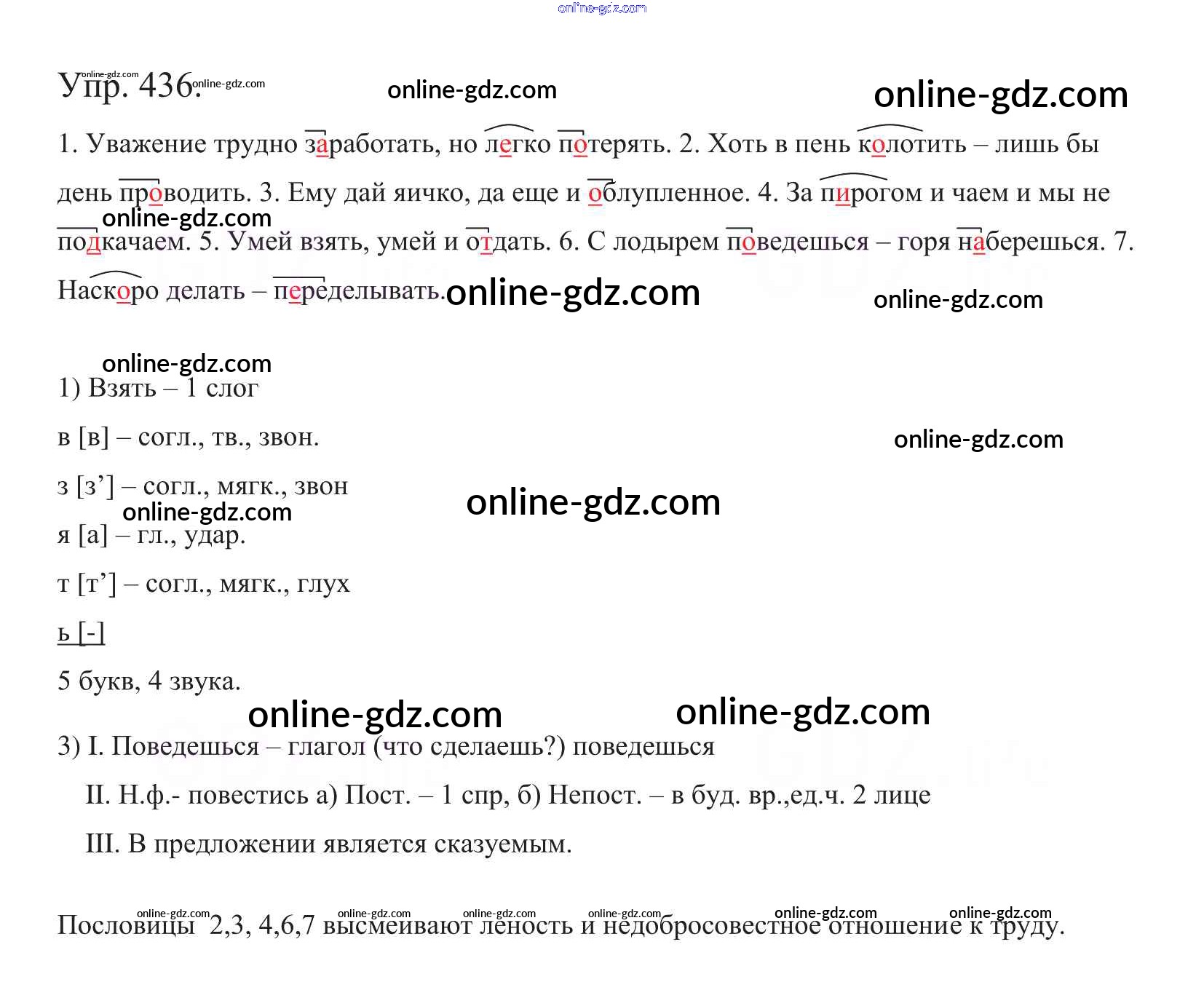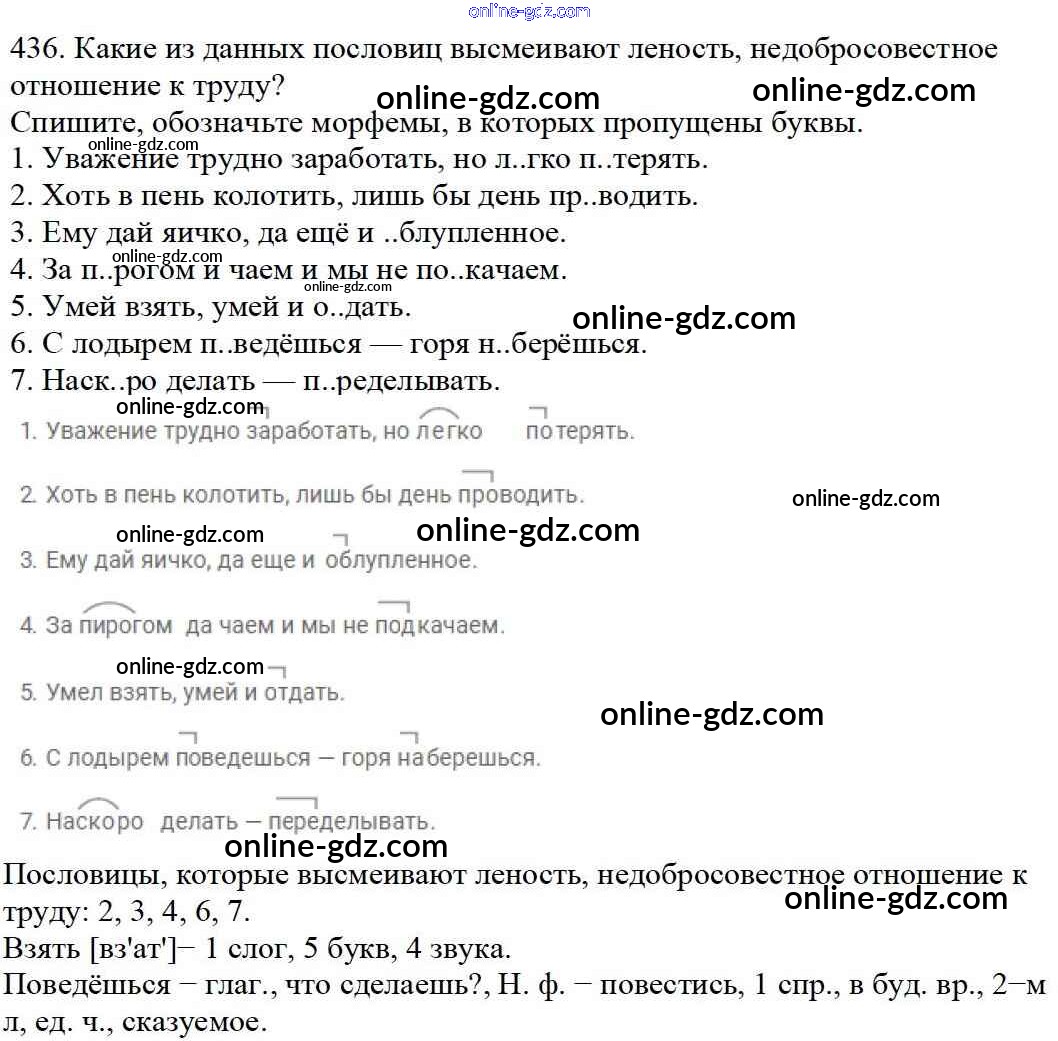 Готовые домашние задания по Русскому языку за 5 класс Учебник Баранов, Ладыженская 2016 - Часть 2. Упражнения 436