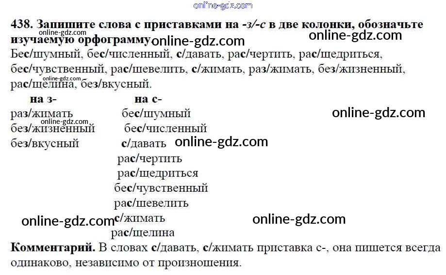Готовые домашние задания по Русскому языку за 5 класс Учебник Баранов, Ладыженская 2016 - Часть 2. Упражнения 438