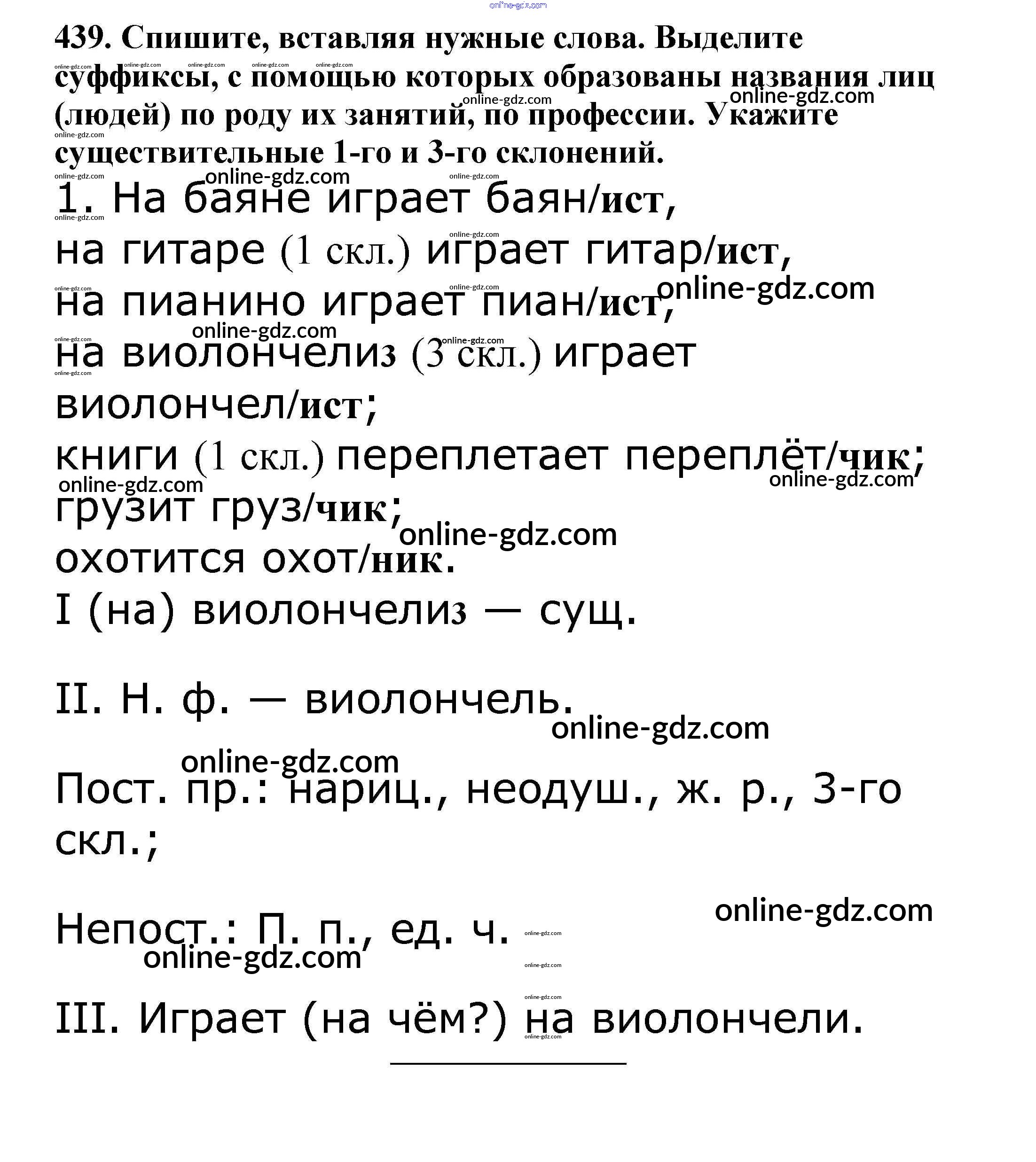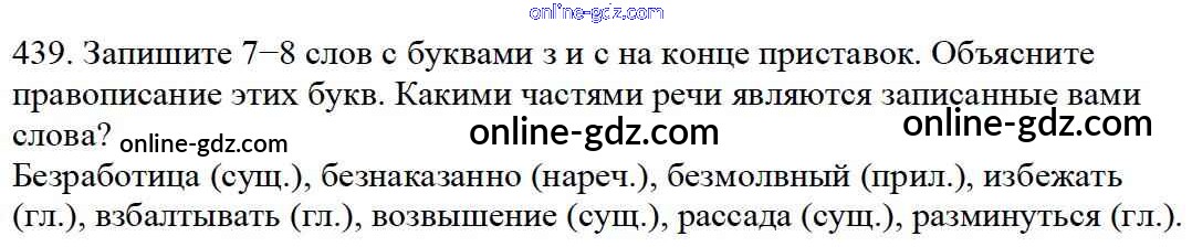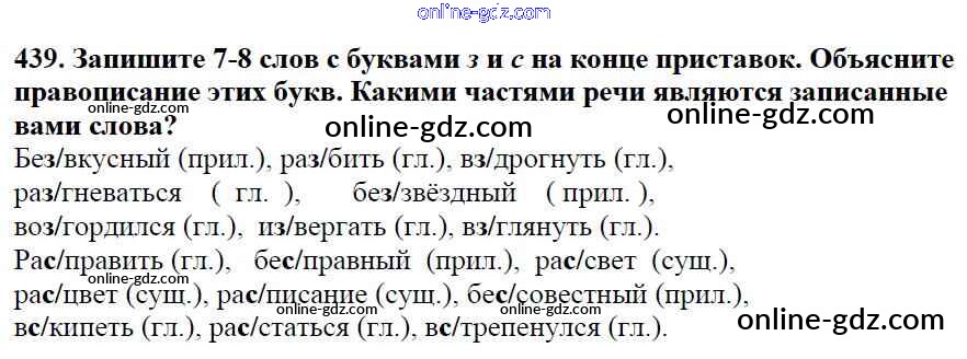 Готовые домашние задания по Русскому языку за 5 класс Учебник Баранов, Ладыженская 2016 - Часть 2. Упражнения 439