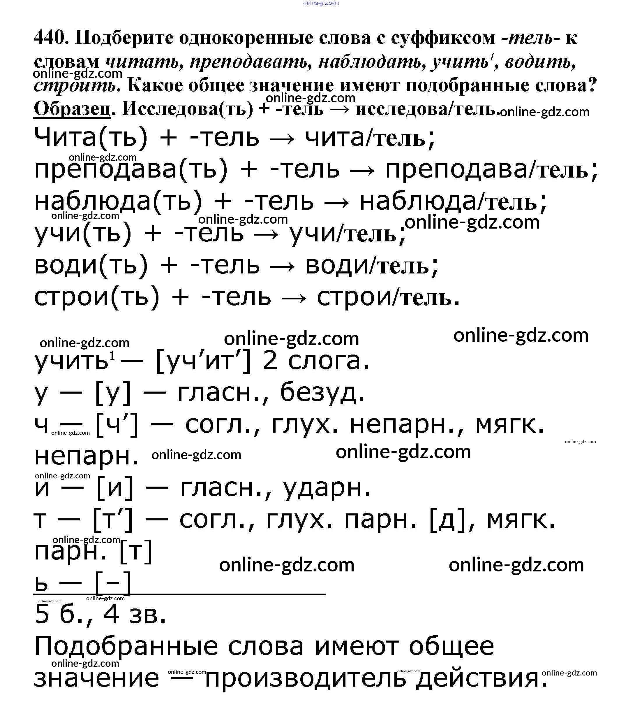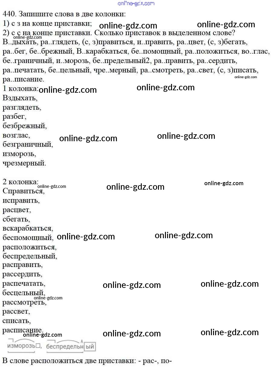 Готовые домашние задания по Русскому языку за 5 класс Учебник Баранов, Ладыженская 2016 - Часть 2. Упражнения 440