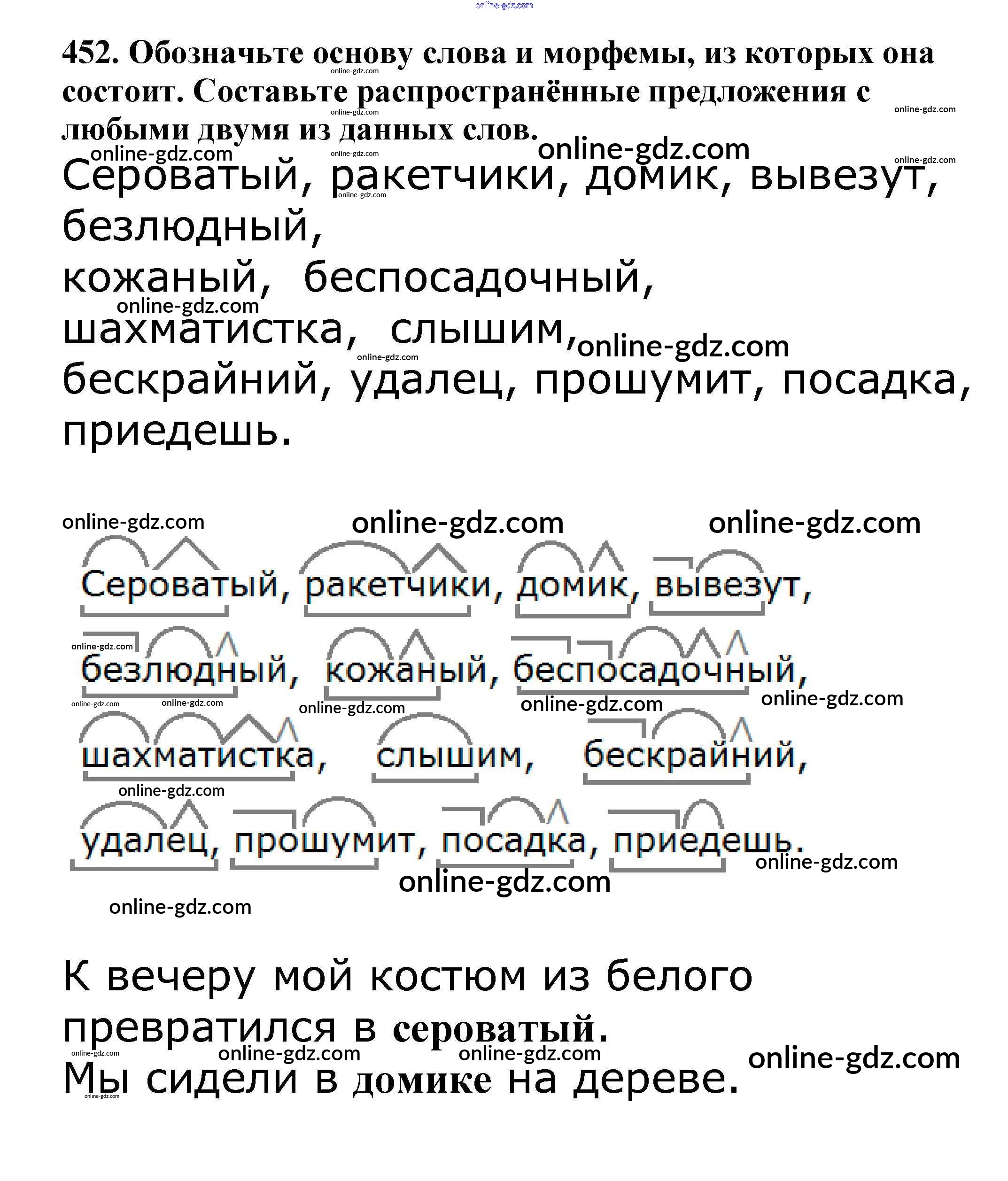 Готовые домашние задания по Русскому языку за 5 класс Учебник Баранов, Ладыженская 2016 - Часть 2. Упражнения 452