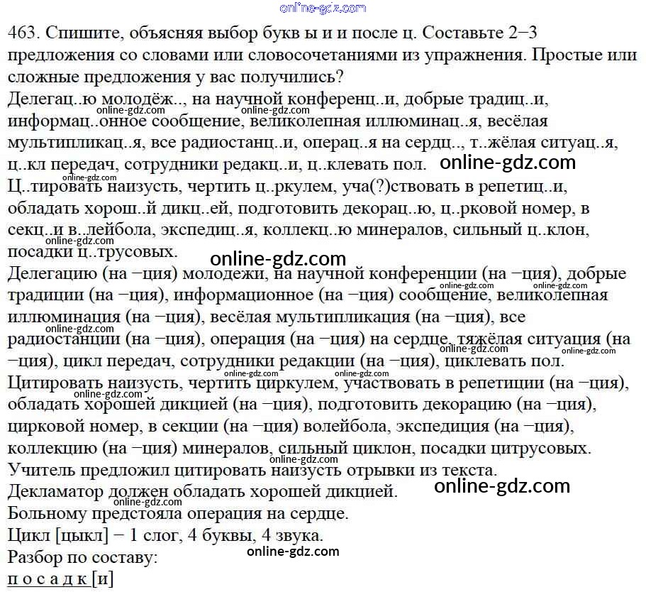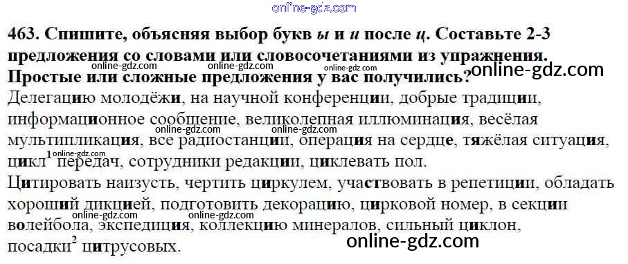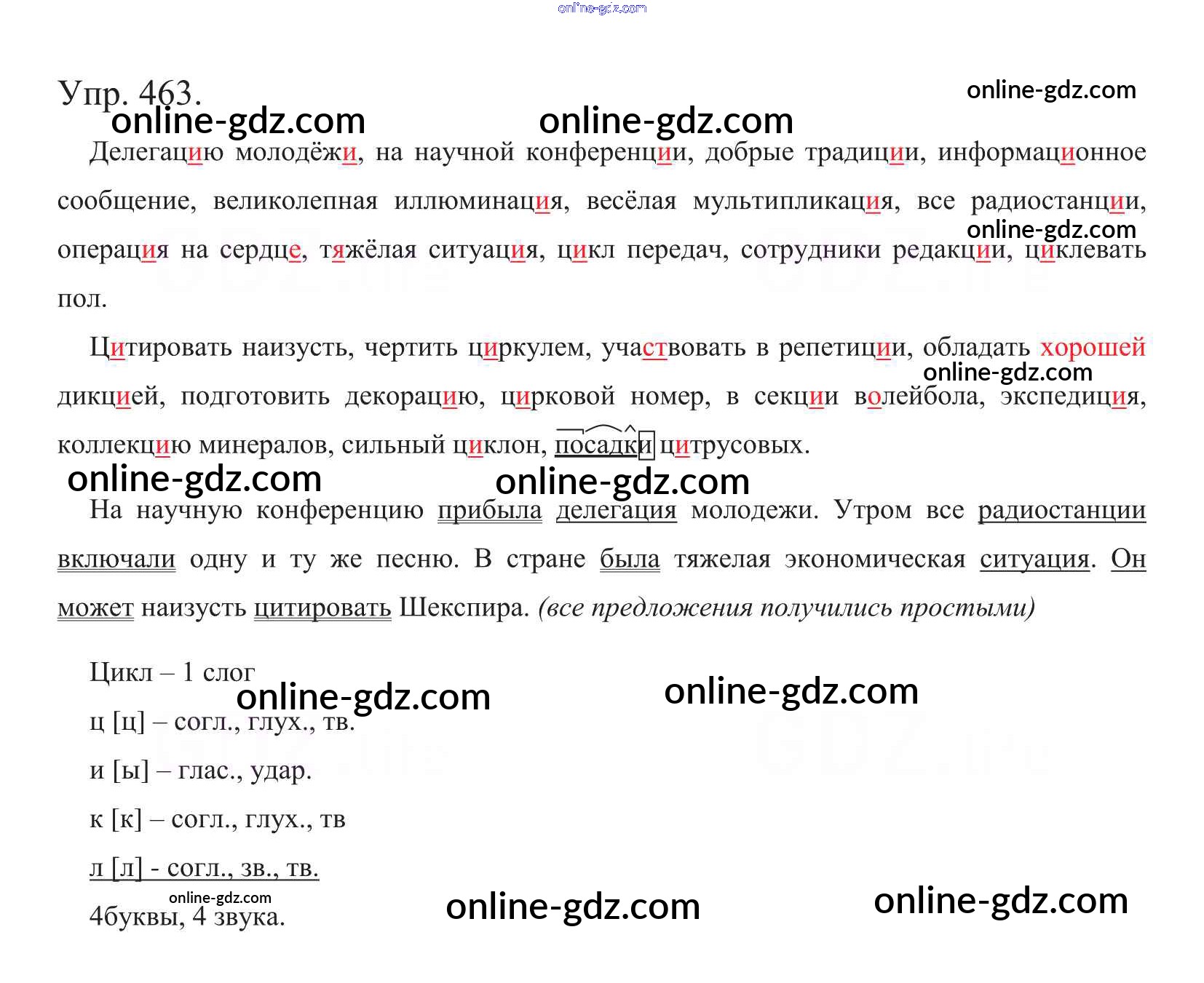 Готовые домашние задания по Русскому языку за 5 класс Учебник Баранов, Ладыженская 2016 - Часть 2. Упражнения 463