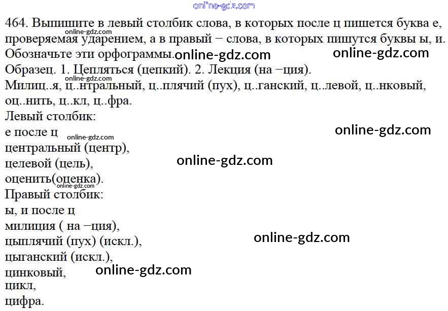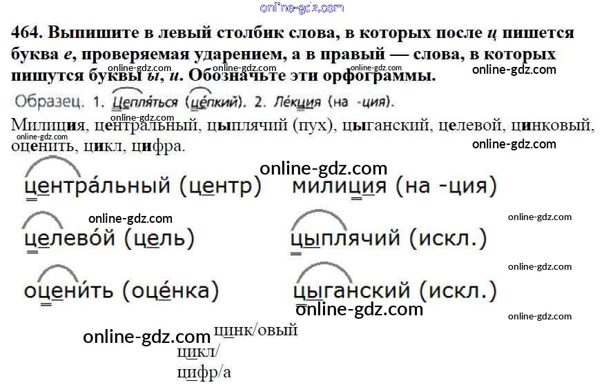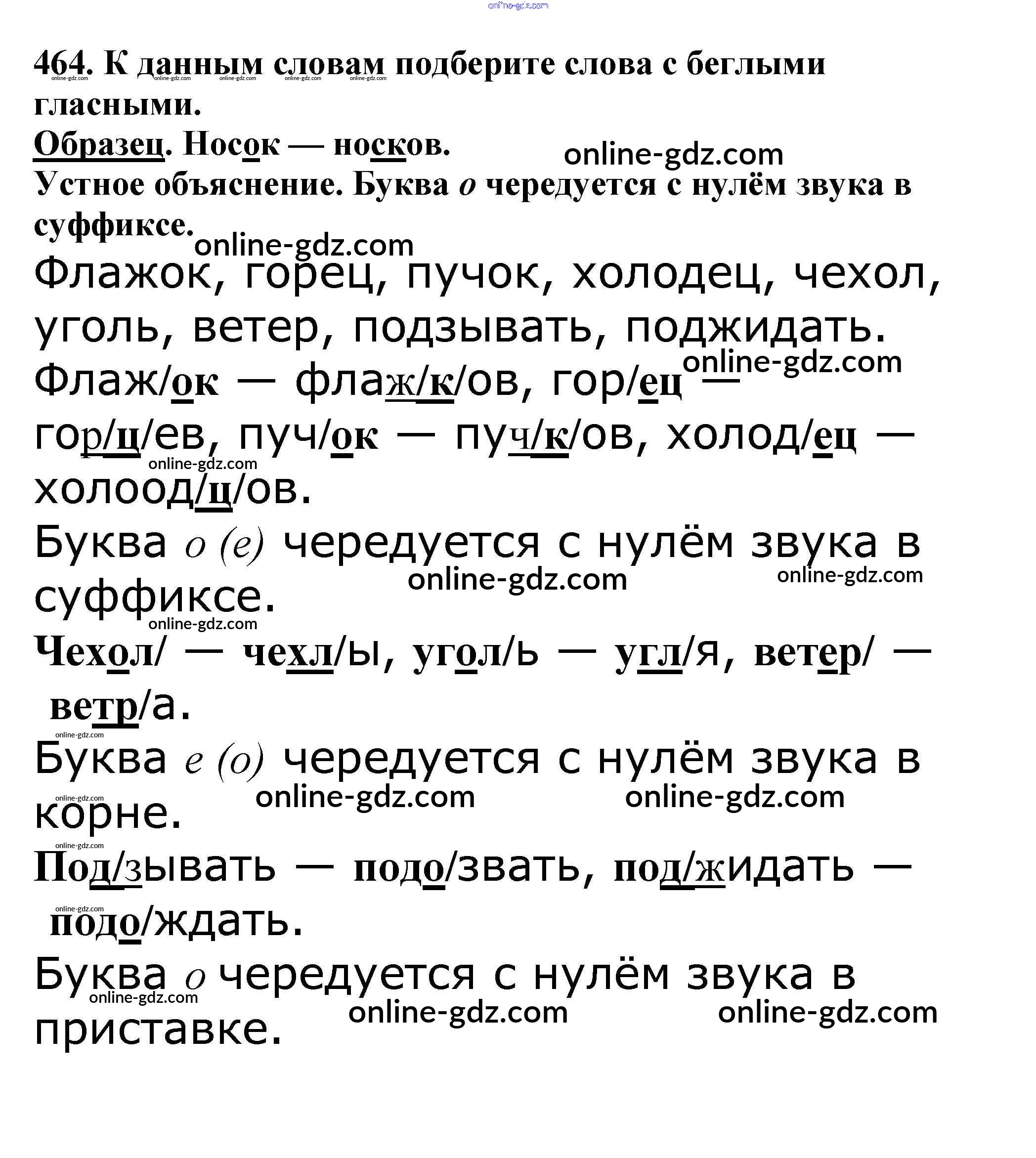 Готовые домашние задания по Русскому языку за 5 класс Учебник Баранов, Ладыженская 2016 - Часть 2. Упражнения 464