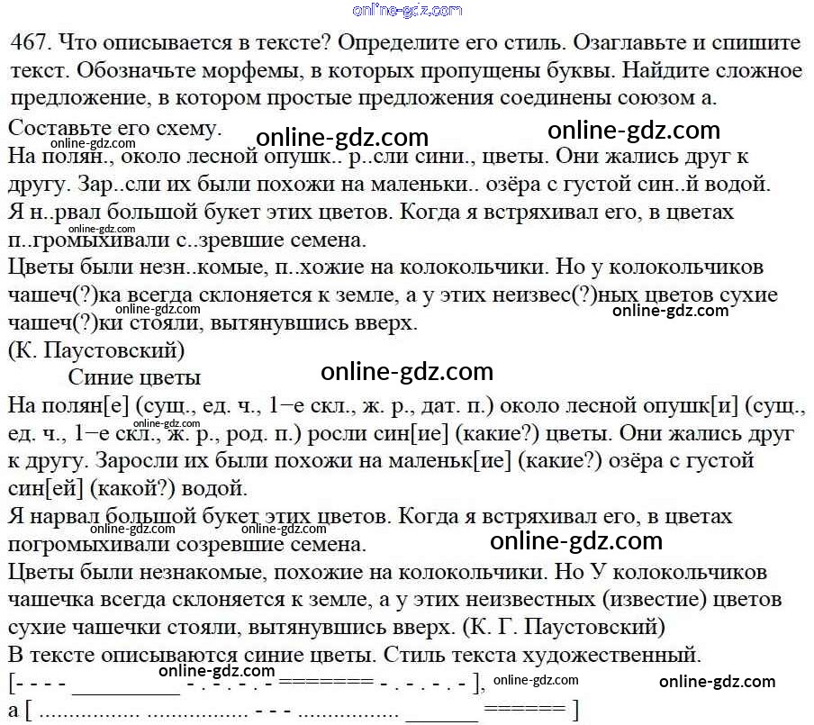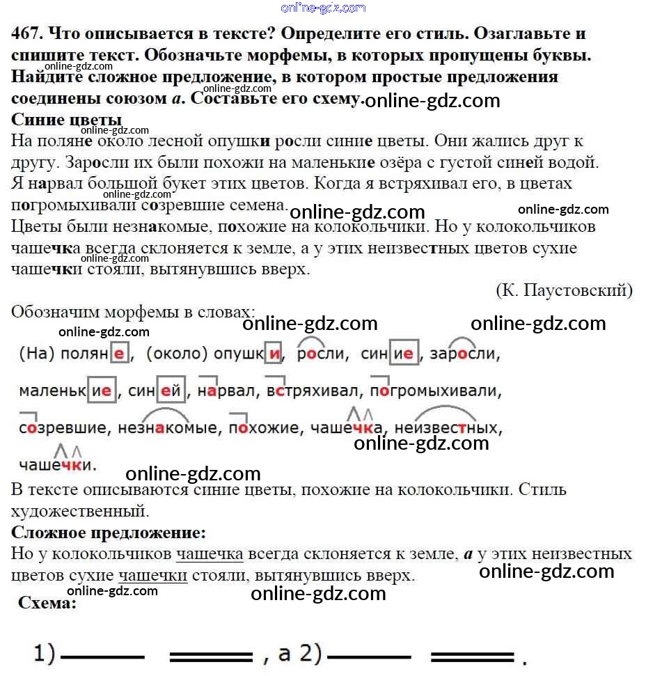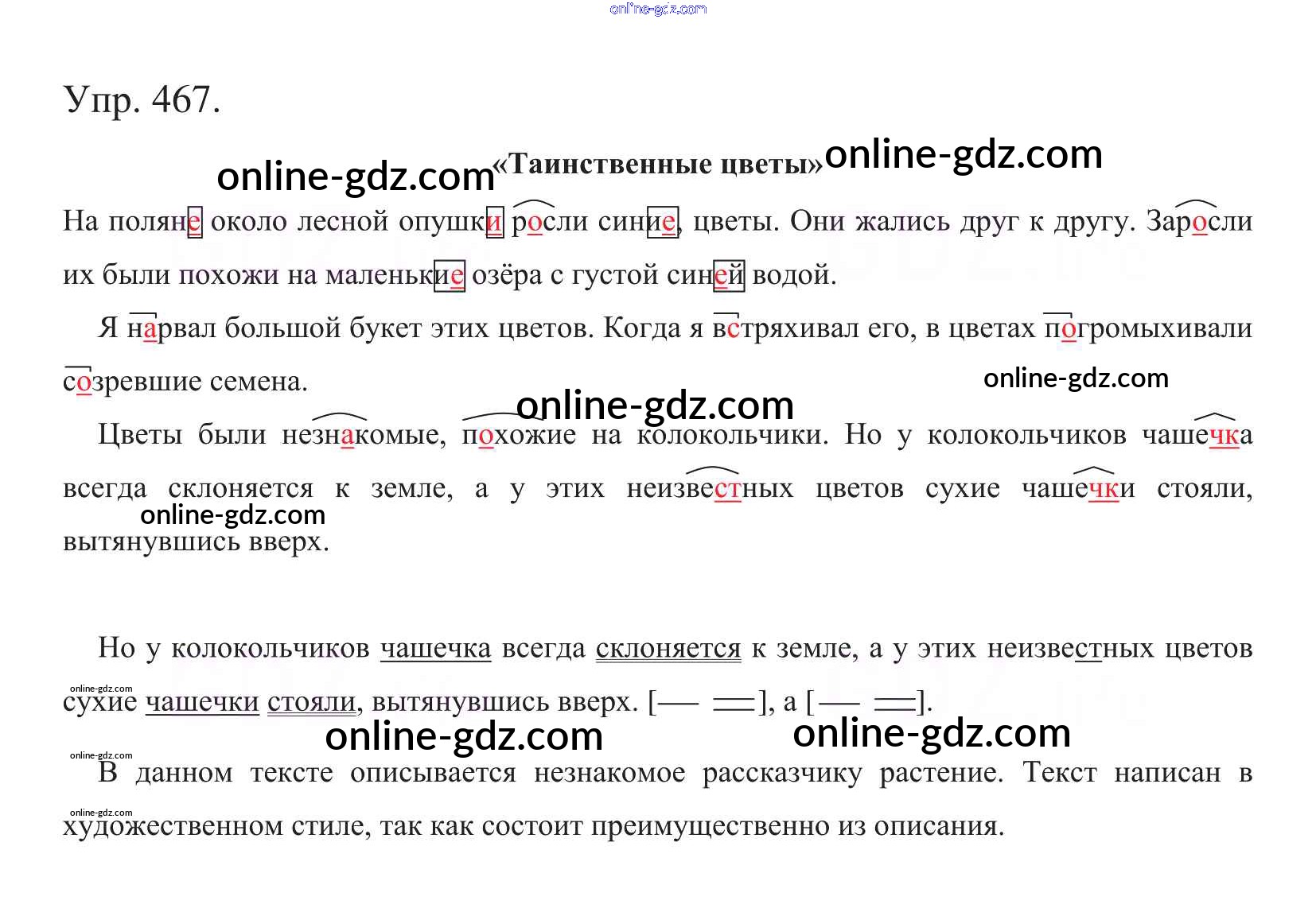 Готовые домашние задания по Русскому языку за 5 класс Учебник Баранов, Ладыженская 2016 - Часть 2. Упражнения 467