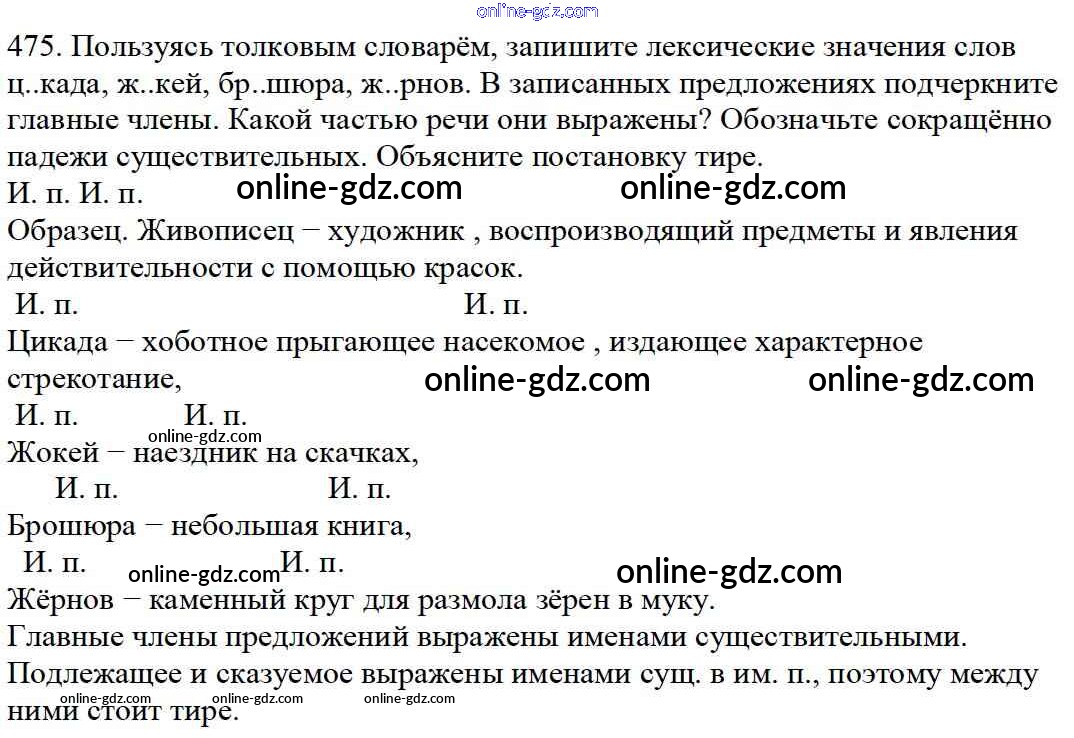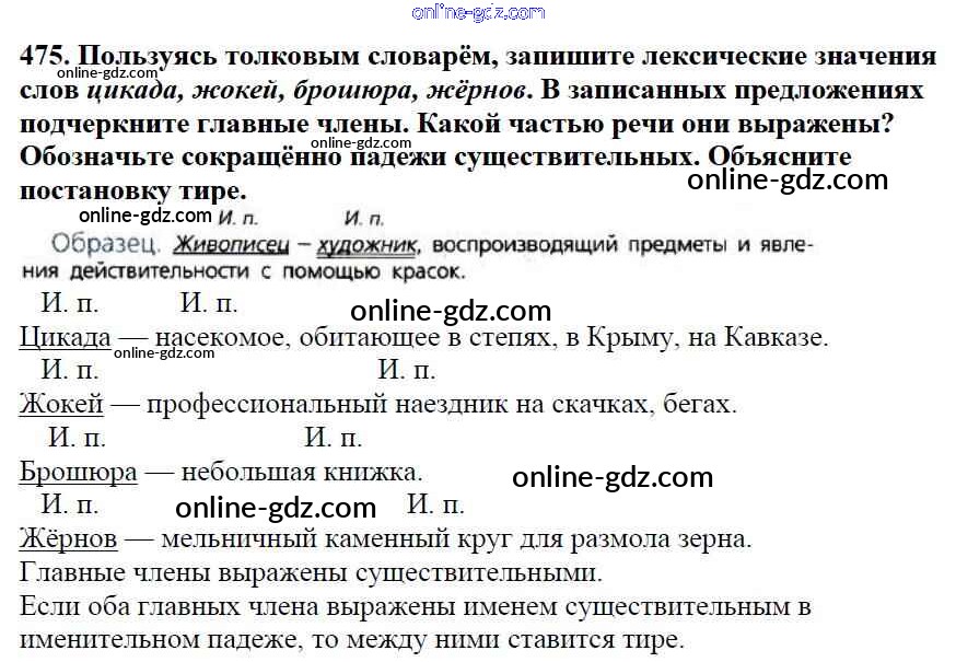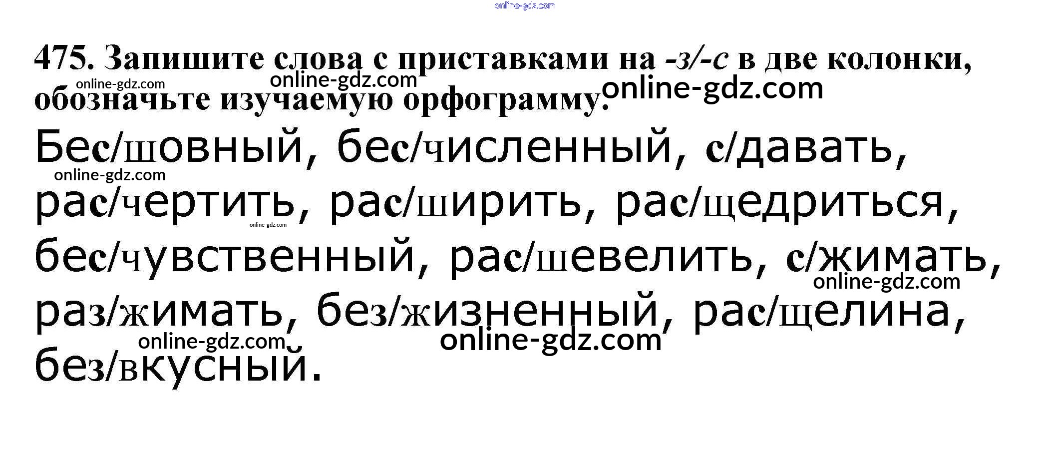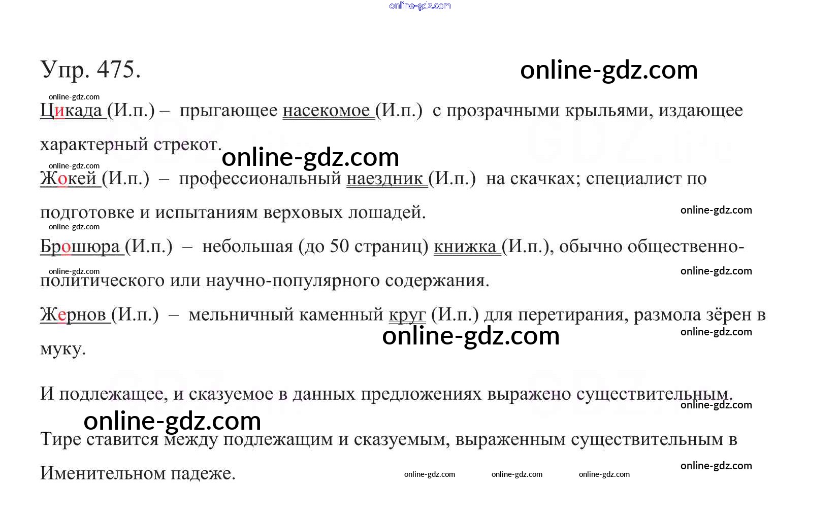 Готовые домашние задания по Русскому языку за 5 класс Учебник Баранов, Ладыженская 2016 - Часть 2. Упражнения 475