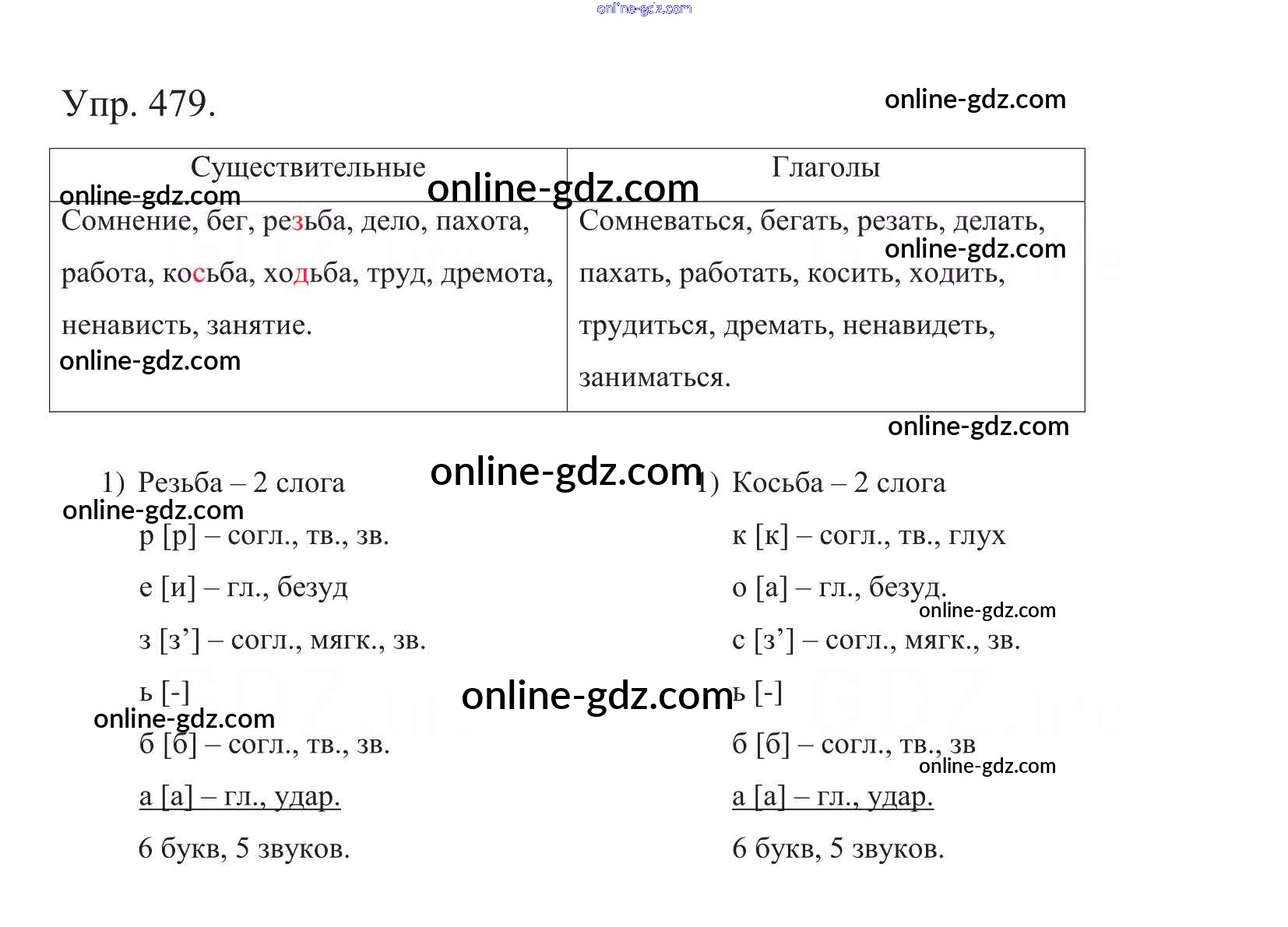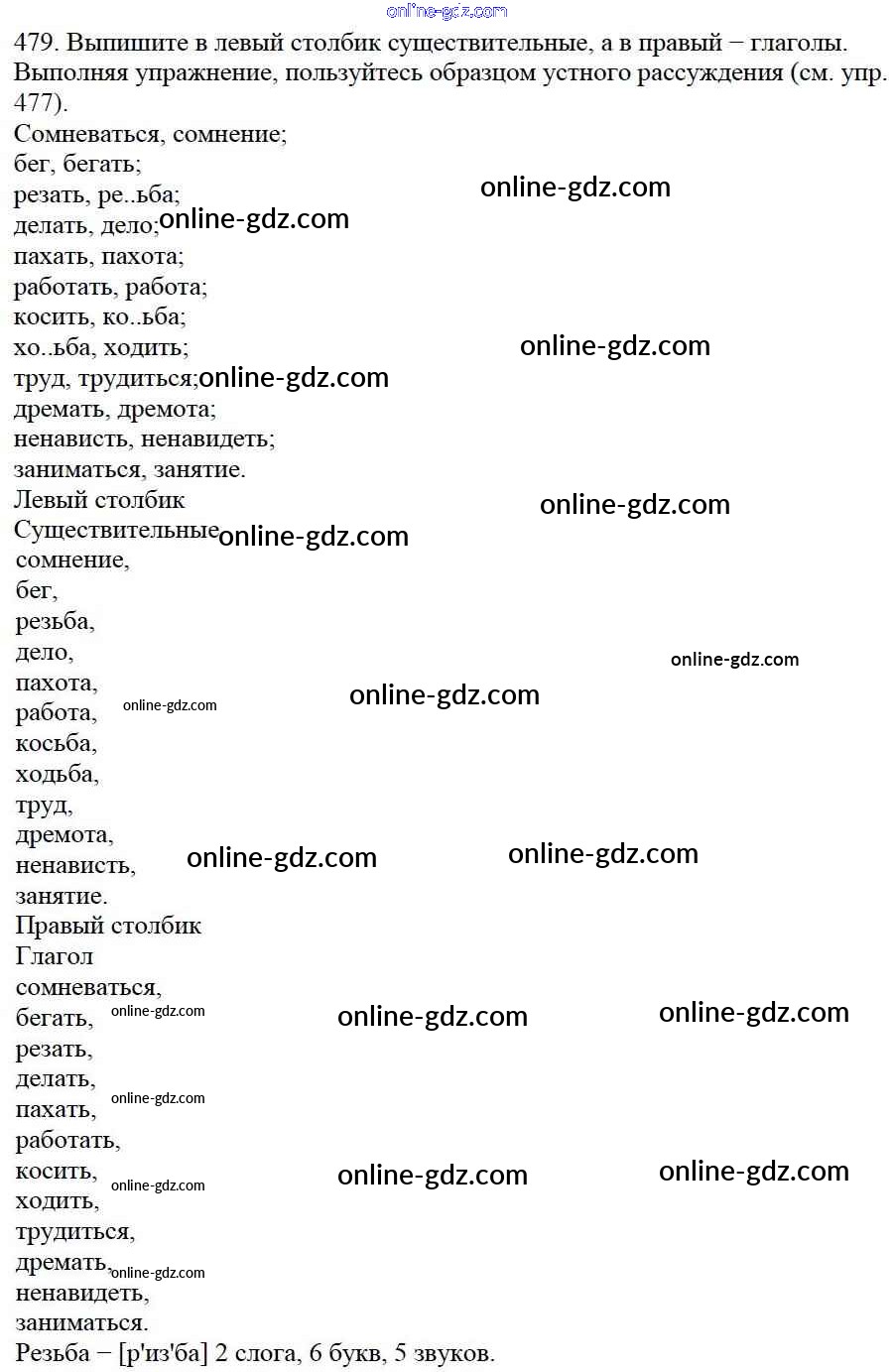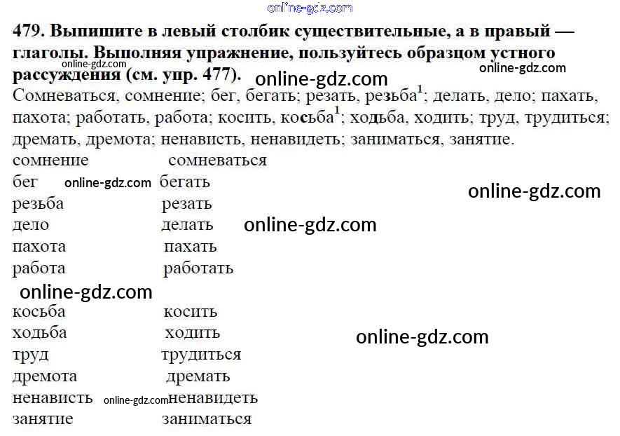 Готовые домашние задания по Русскому языку за 5 класс Учебник Баранов, Ладыженская 2016 - Часть 2. Упражнения 479