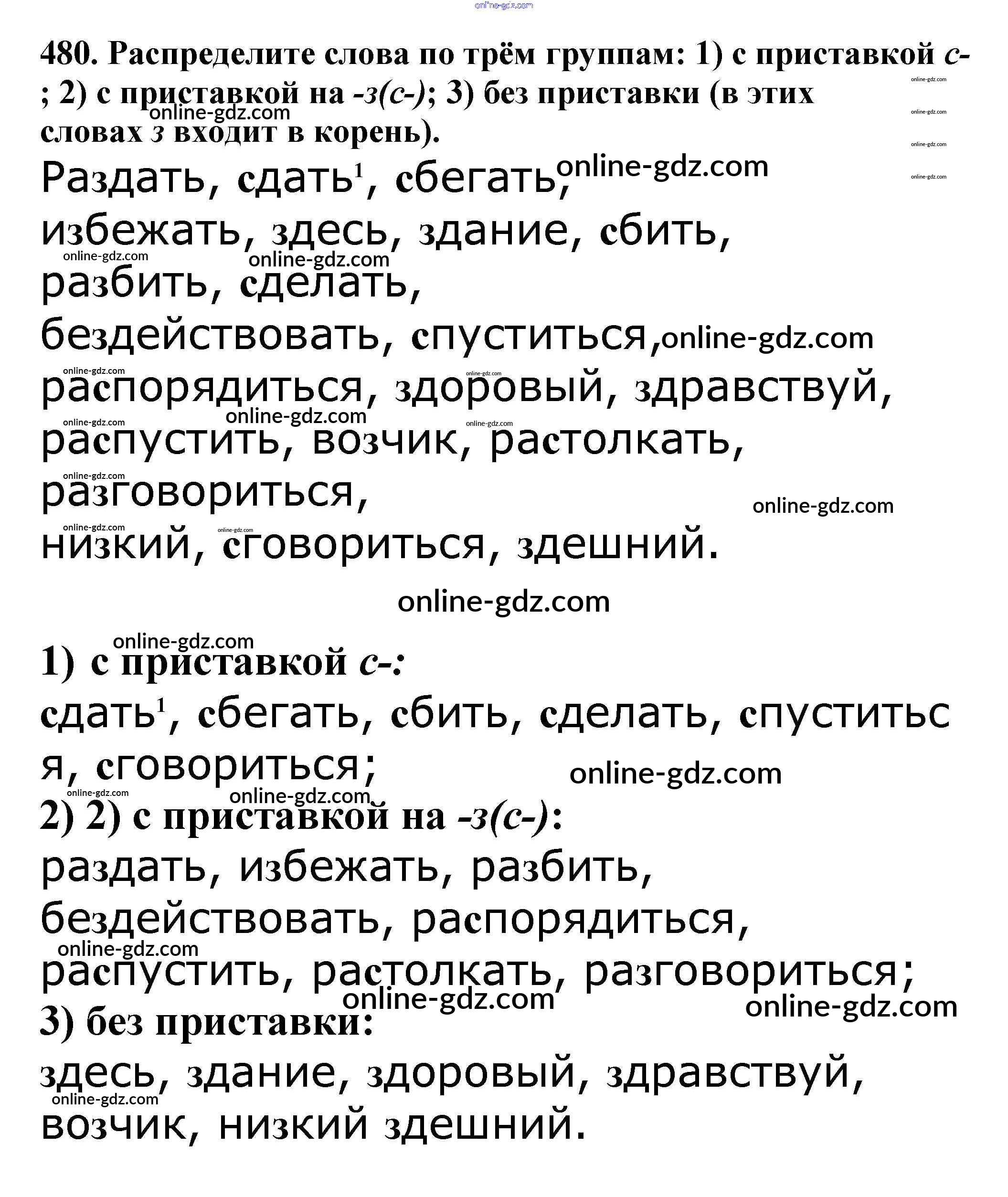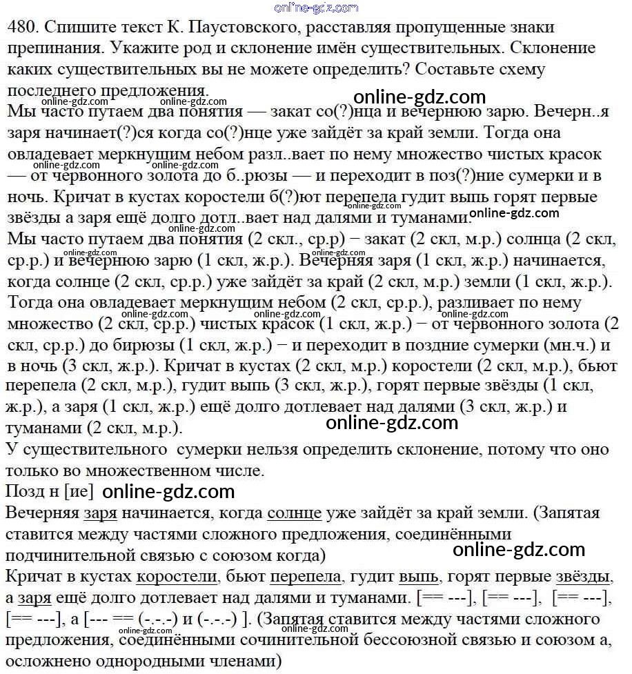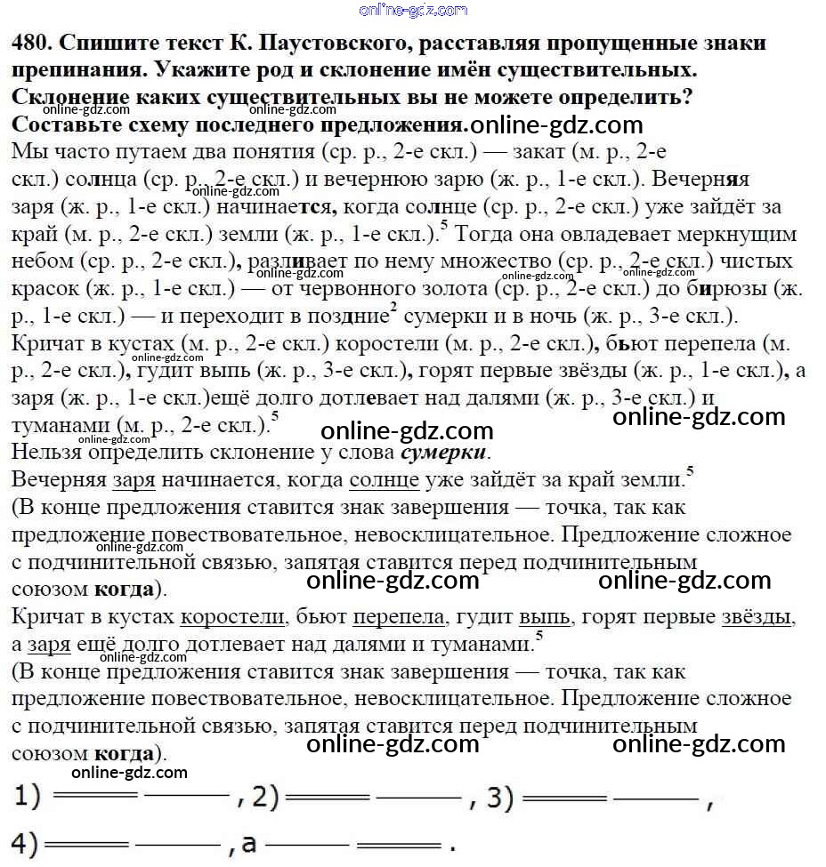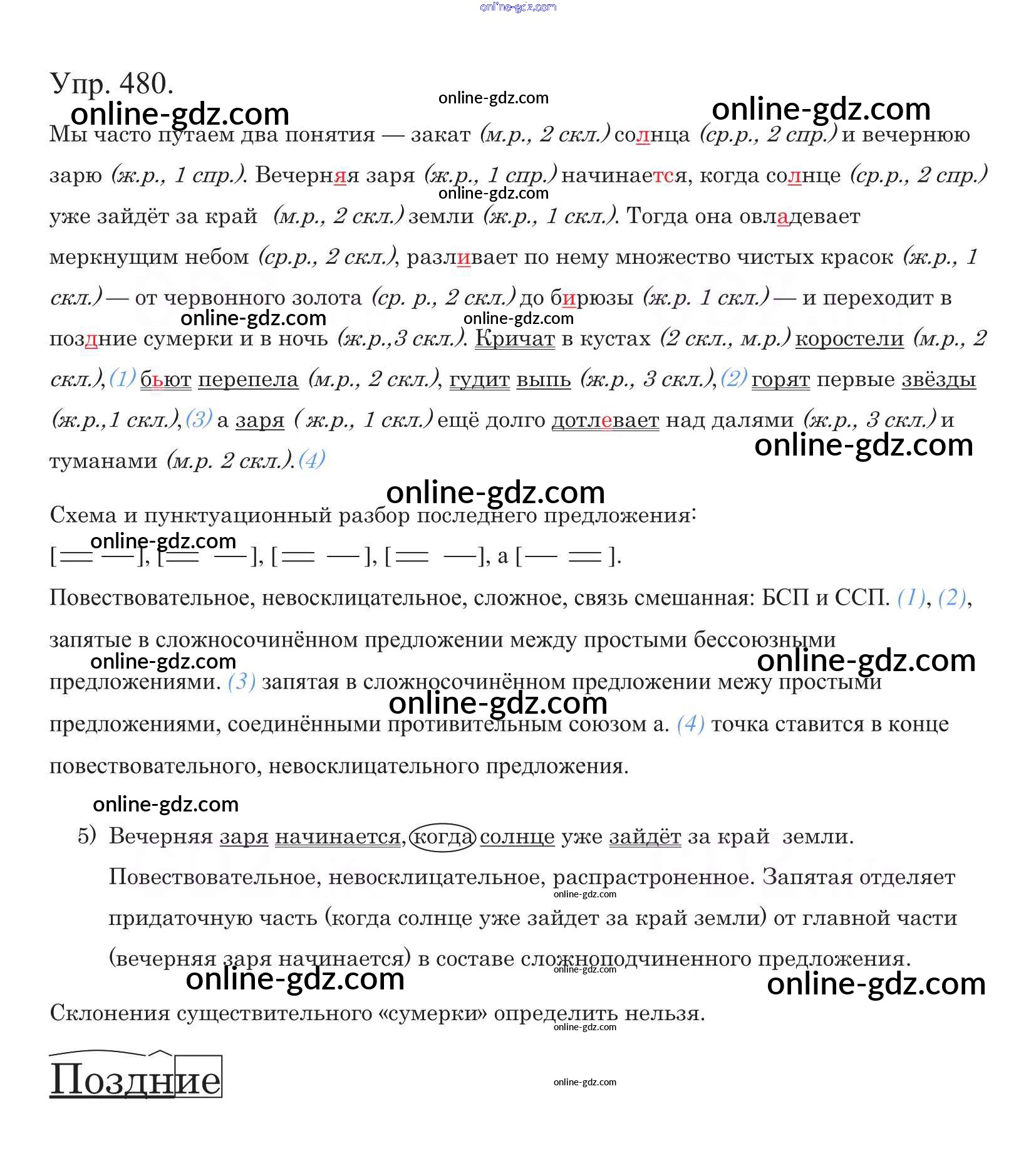 Готовые домашние задания по Русскому языку за 5 класс Учебник Баранов, Ладыженская 2016 - Часть 2. Упражнения 480