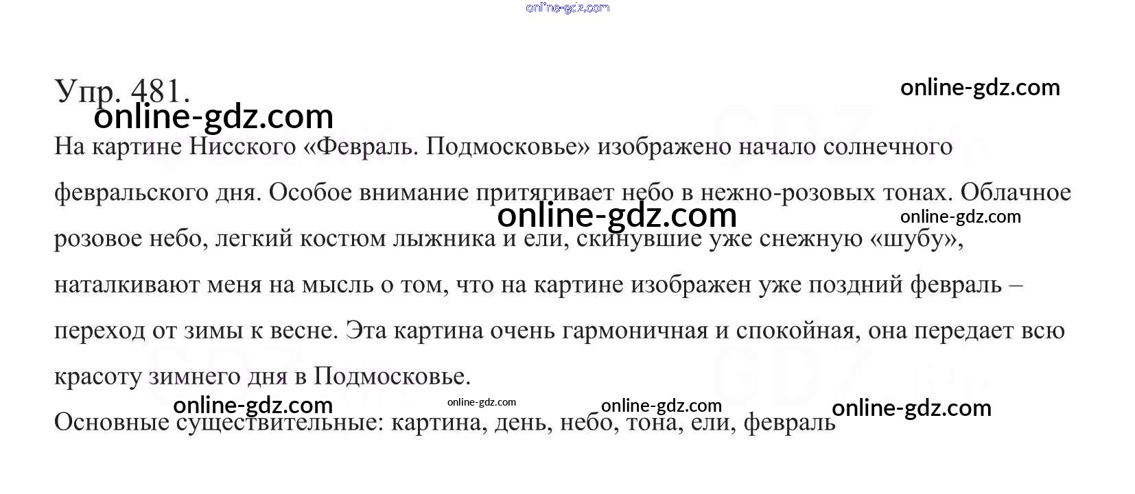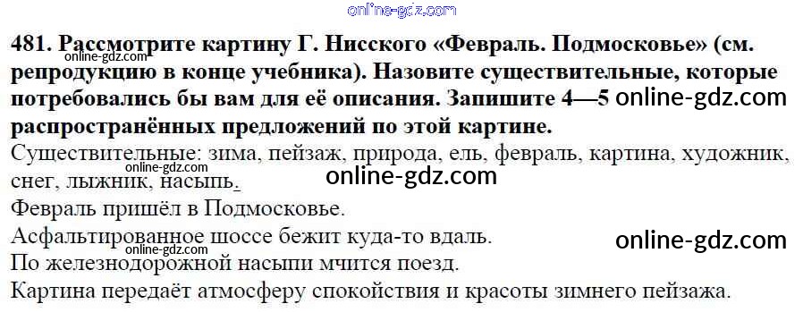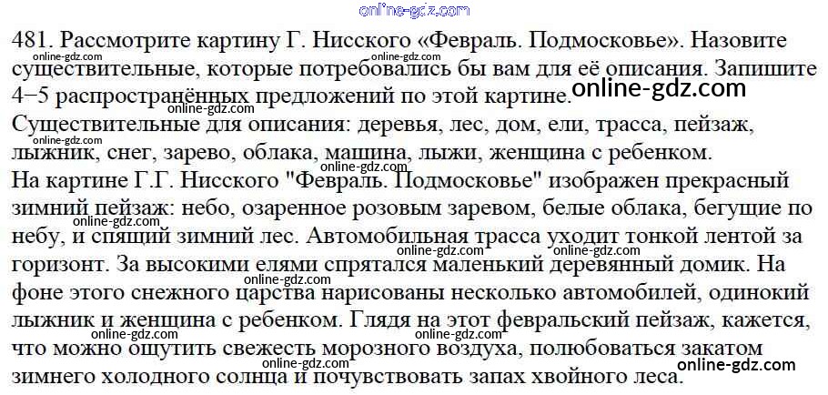 Готовые домашние задания по Русскому языку за 5 класс Учебник Баранов, Ладыженская 2016 - Часть 2. Упражнения 481