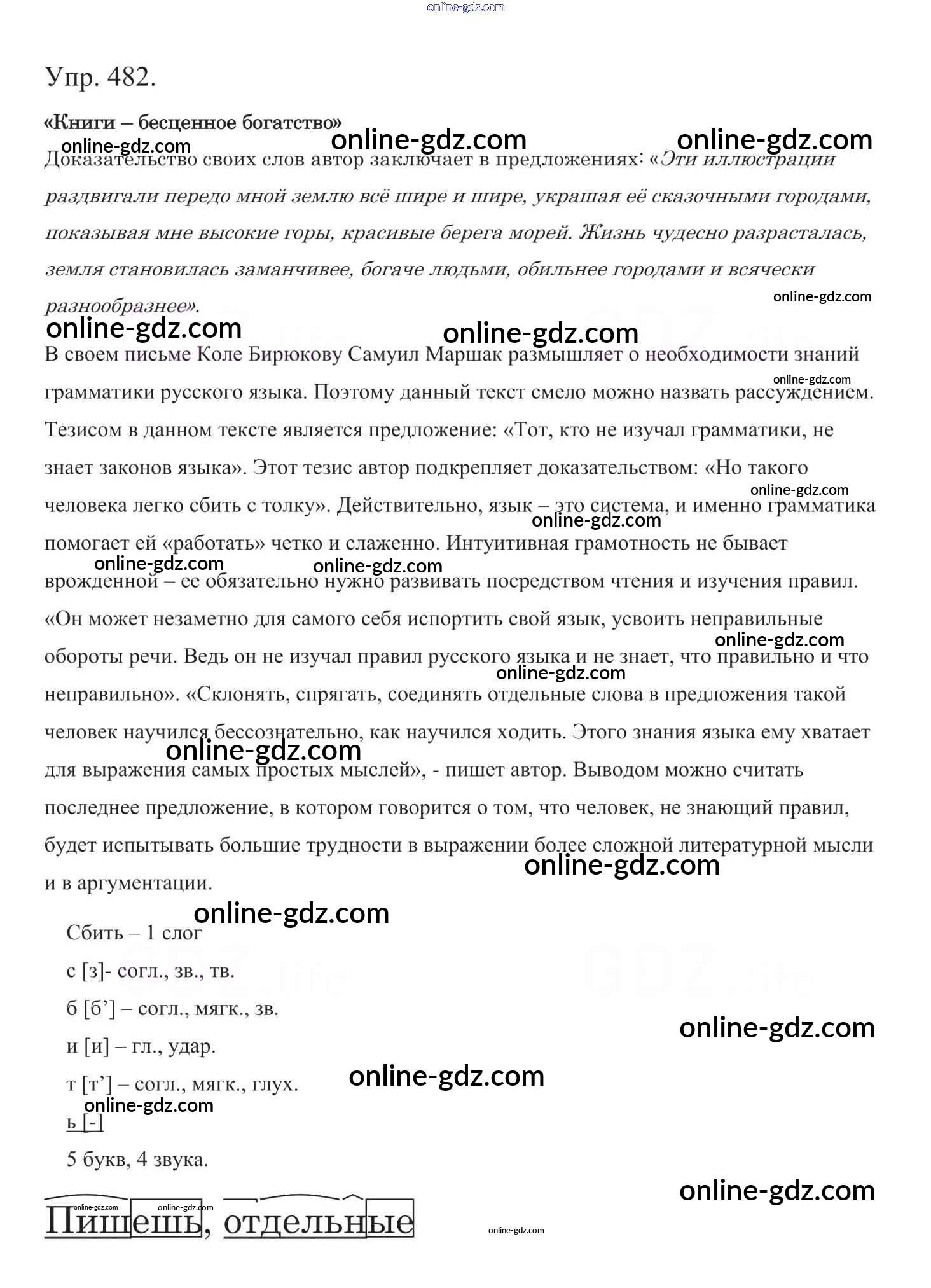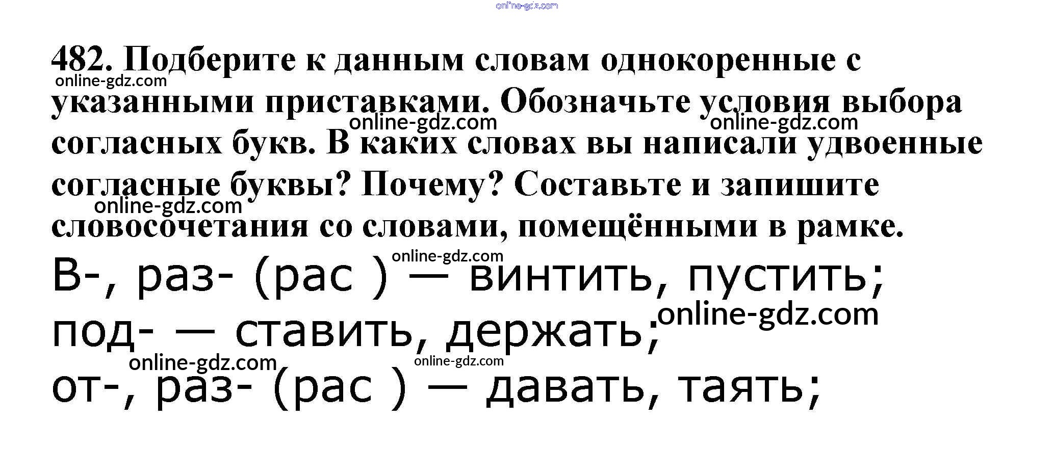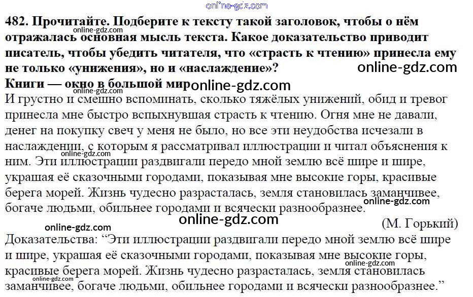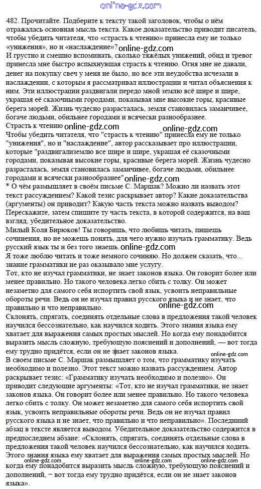 Готовые домашние задания по Русскому языку за 5 класс Учебник Баранов, Ладыженская 2016 - Часть 2. Упражнения 482