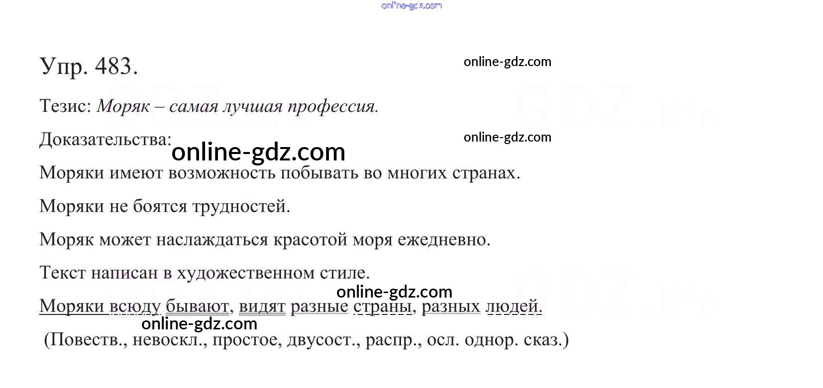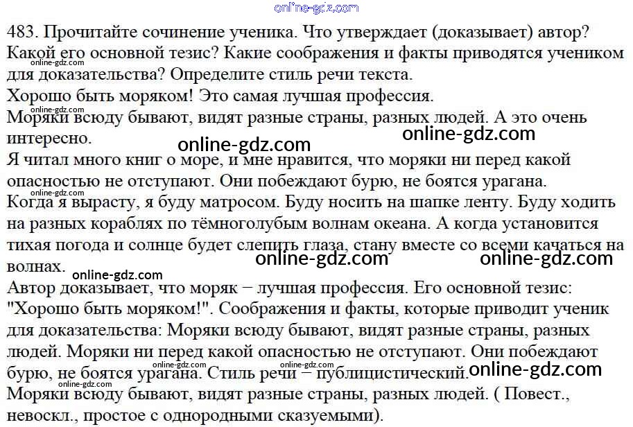 Готовые домашние задания по Русскому языку за 5 класс Учебник Баранов, Ладыженская 2016 - Часть 2. Упражнения 483