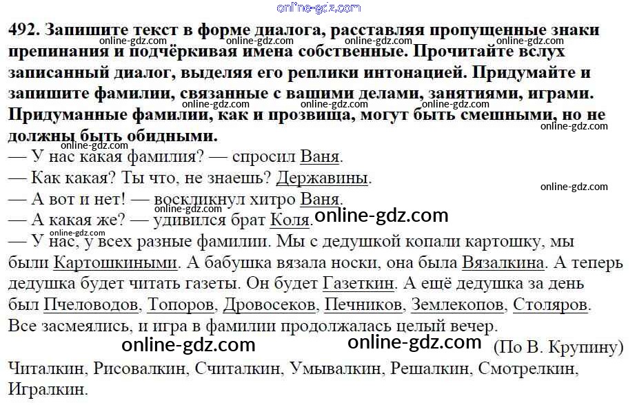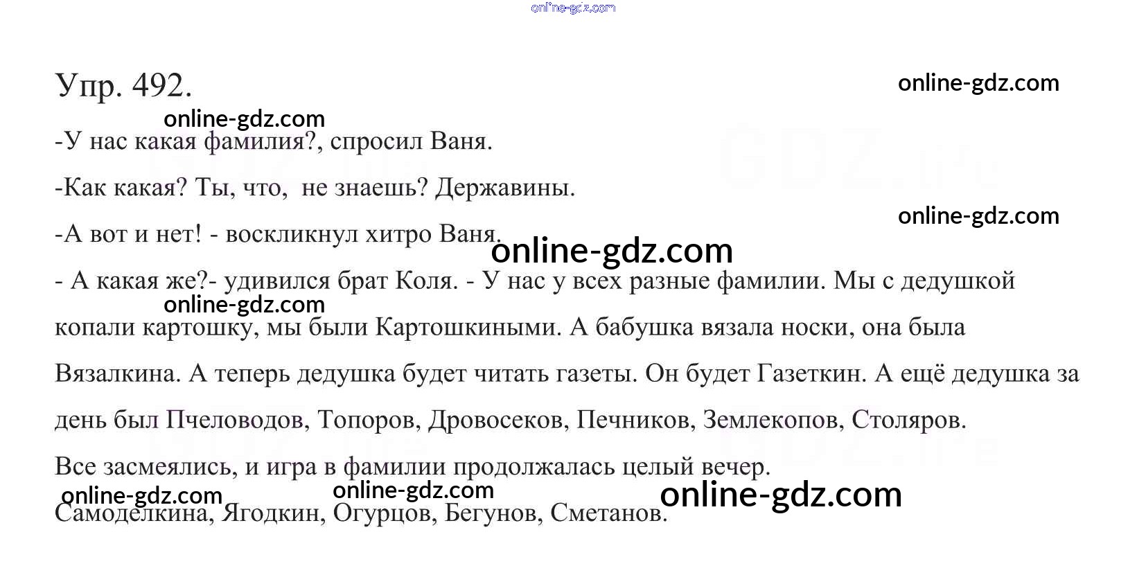 Готовые домашние задания по Русскому языку за 5 класс Учебник Баранов, Ладыженская 2016 - Часть 2. Упражнения 492