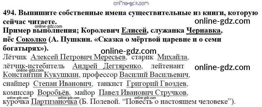 Готовые домашние задания по Русскому языку за 5 класс Учебник Баранов, Ладыженская 2016 - Часть 2. Упражнения 494
