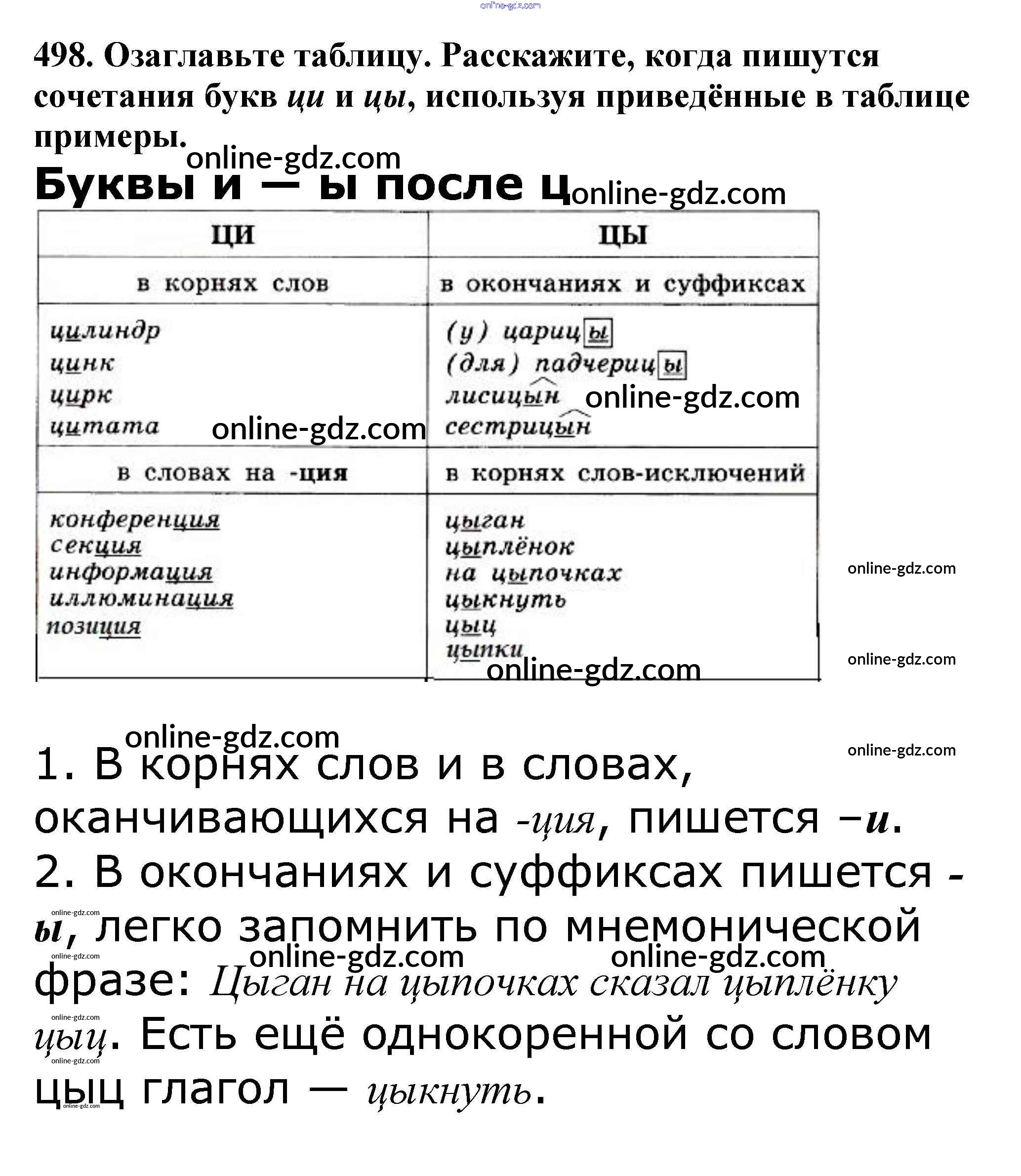Готовые домашние задания по Русскому языку за 5 класс Учебник Баранов, Ладыженская 2016 - Часть 2. Упражнения 498